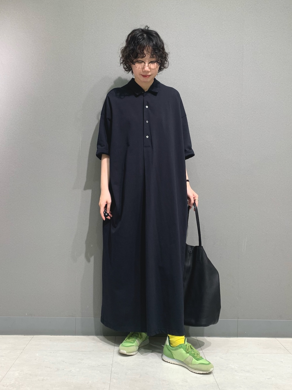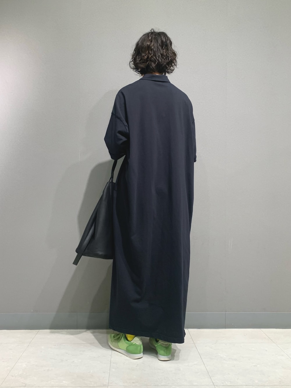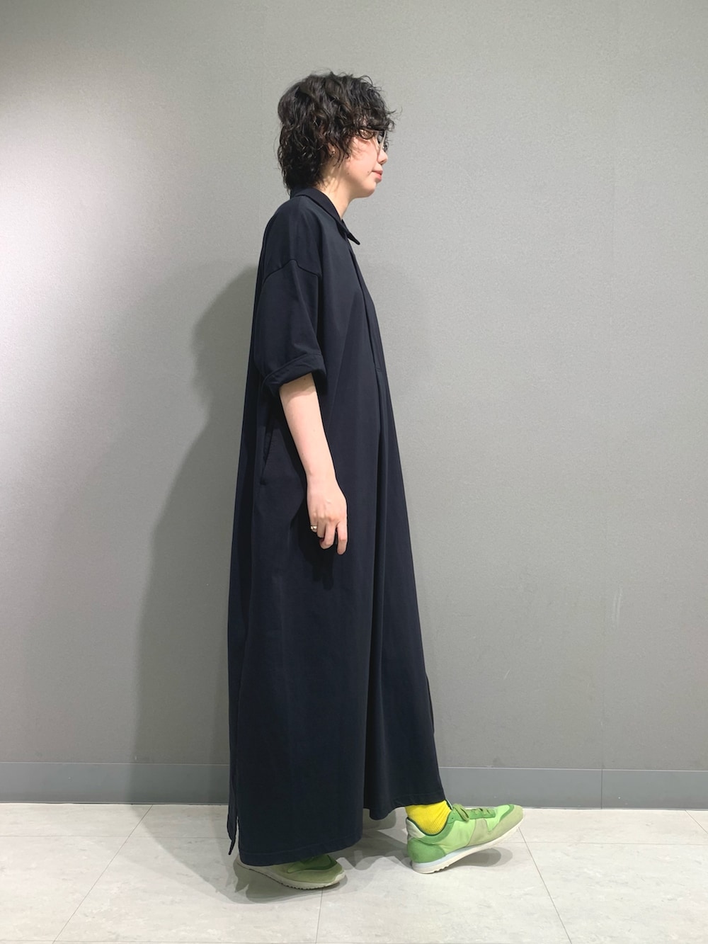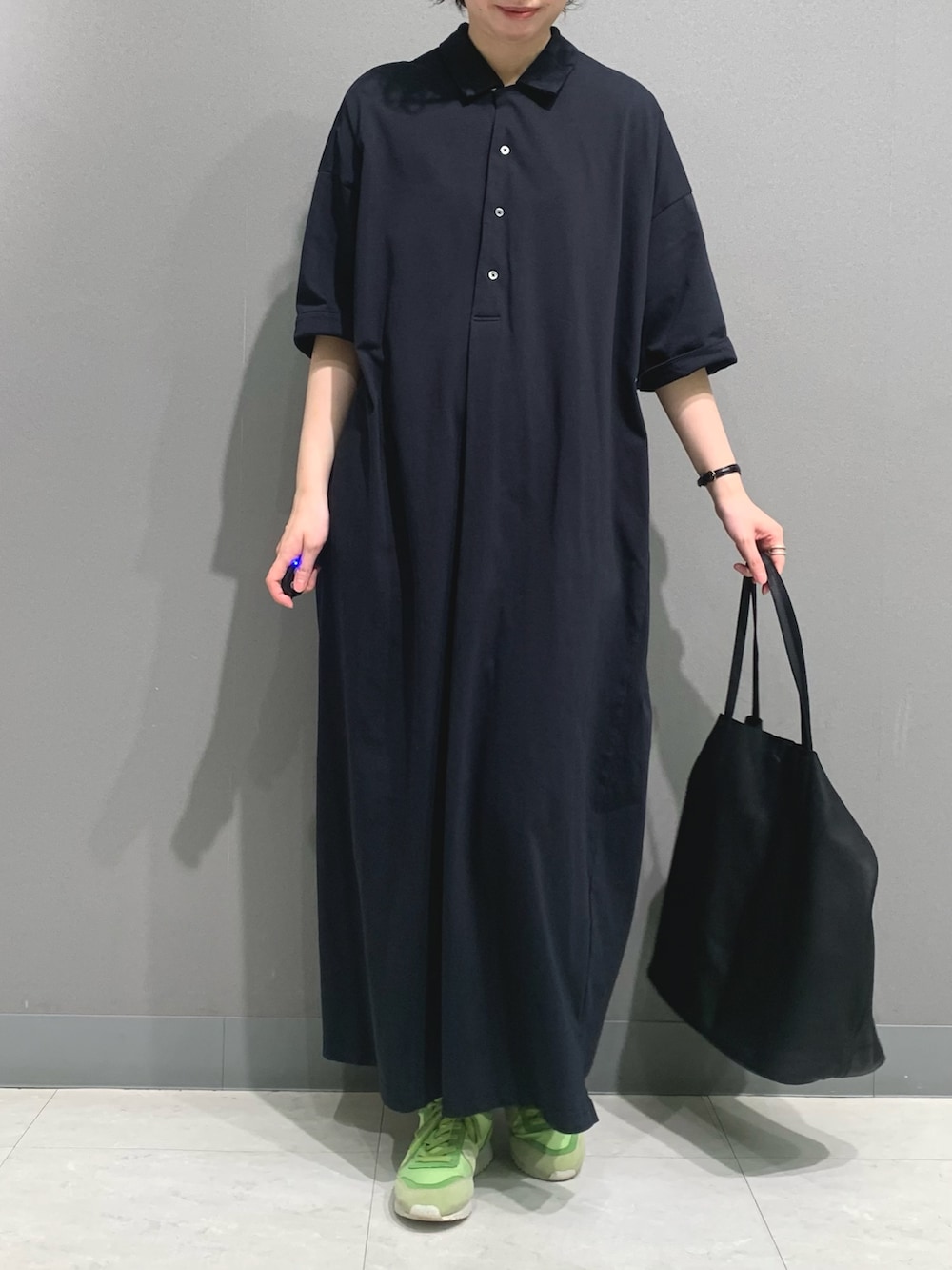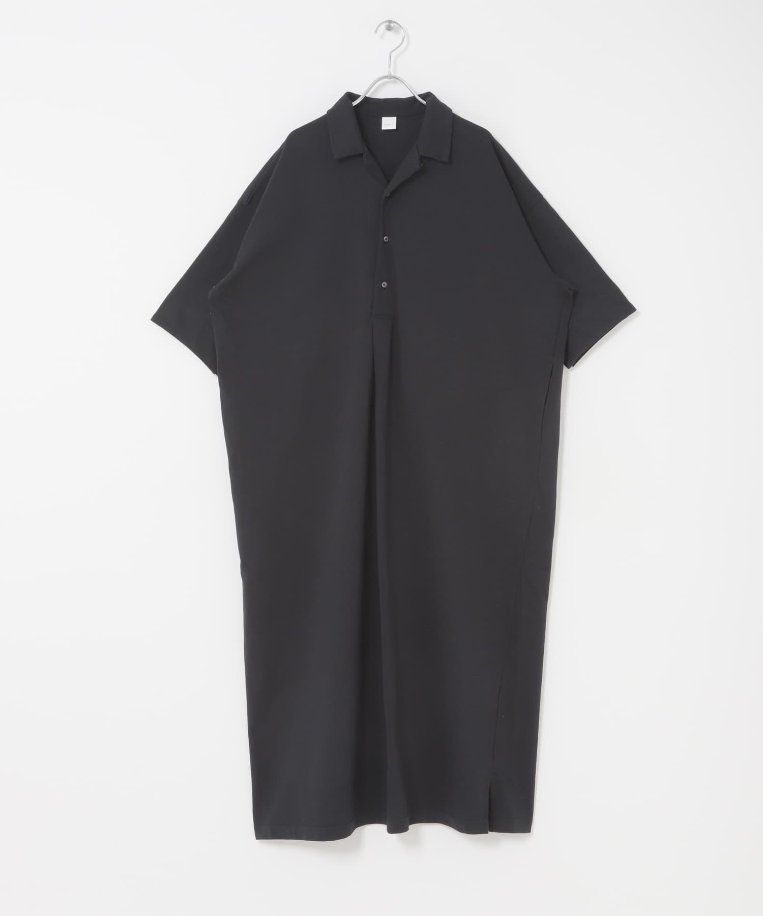 カットソー素材の柔らかな着心地のワンピース。開襟デザインですが、私はポロシャツのように一番上までボタンを留めて着用しております。透け感がなく真夏に一枚で着れる優れ物です。