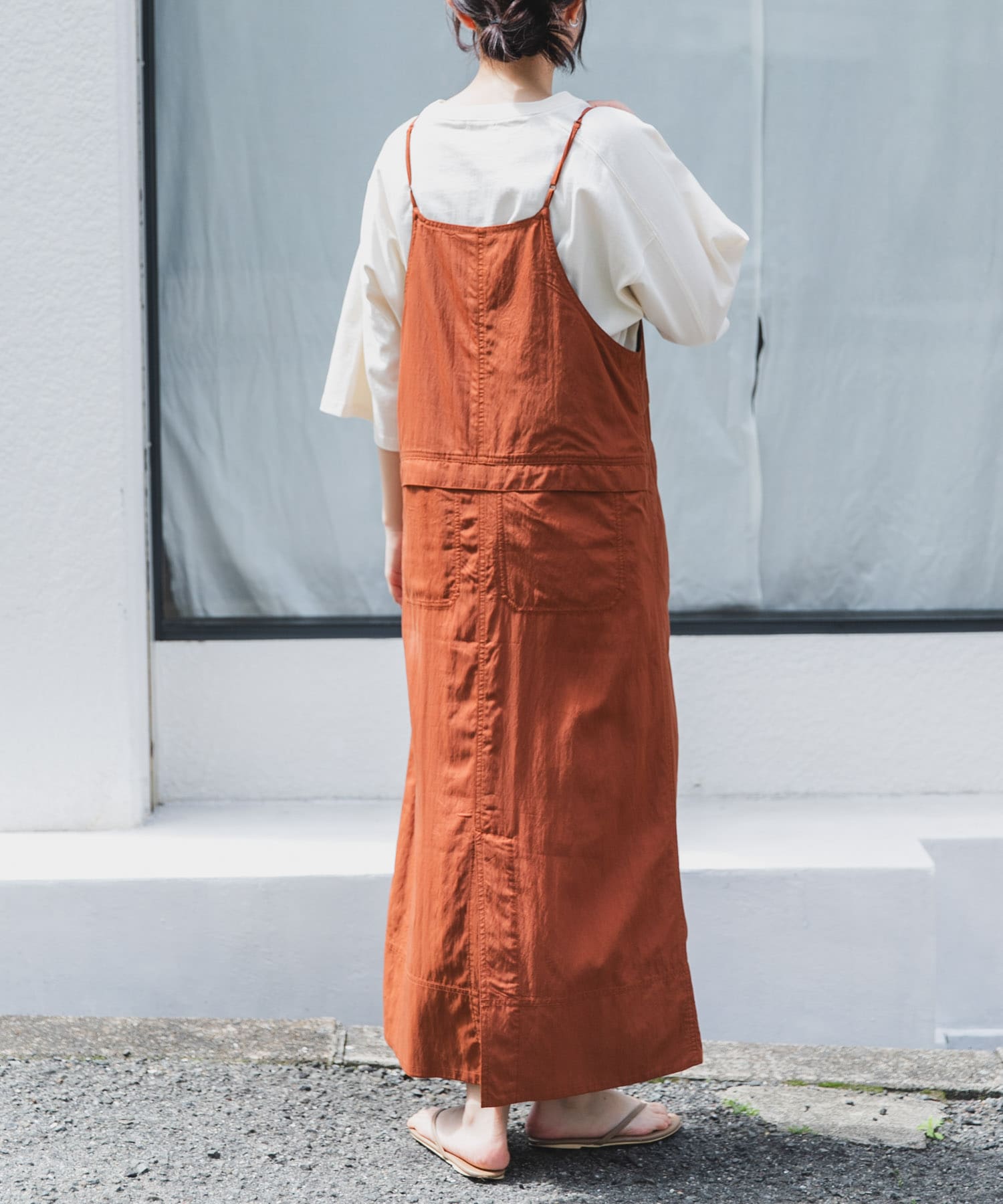 ポケットがフロントに3つとバックに2つついた機能性ジャンパースカートなんです!