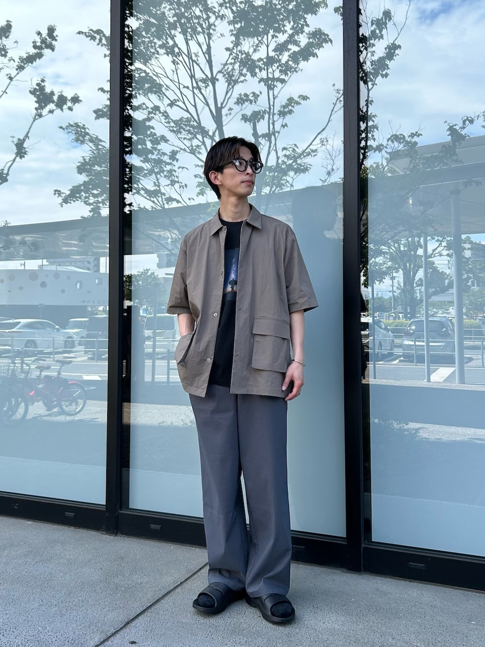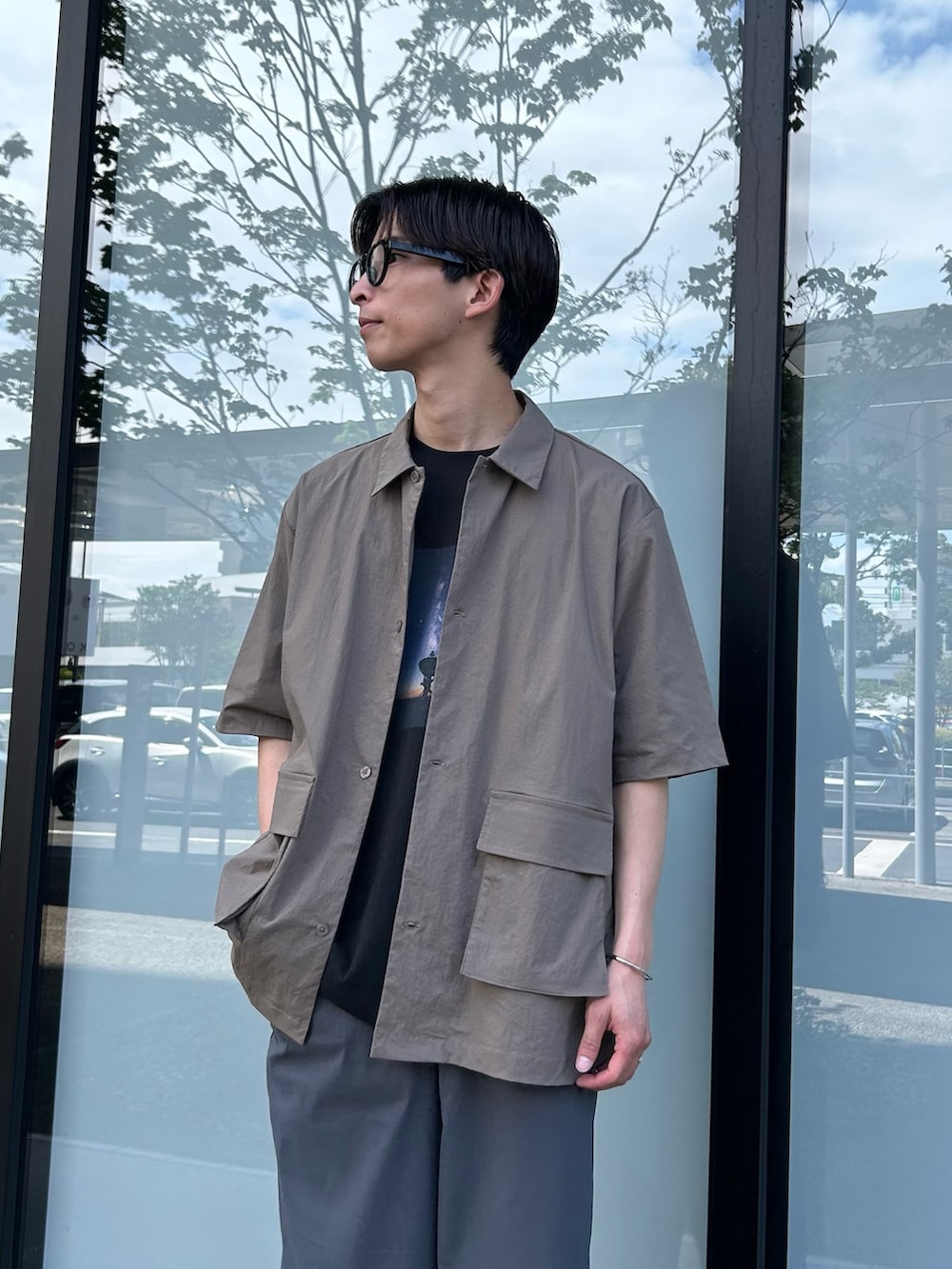 インナーはプリントTEEでアクセントをプラス◎