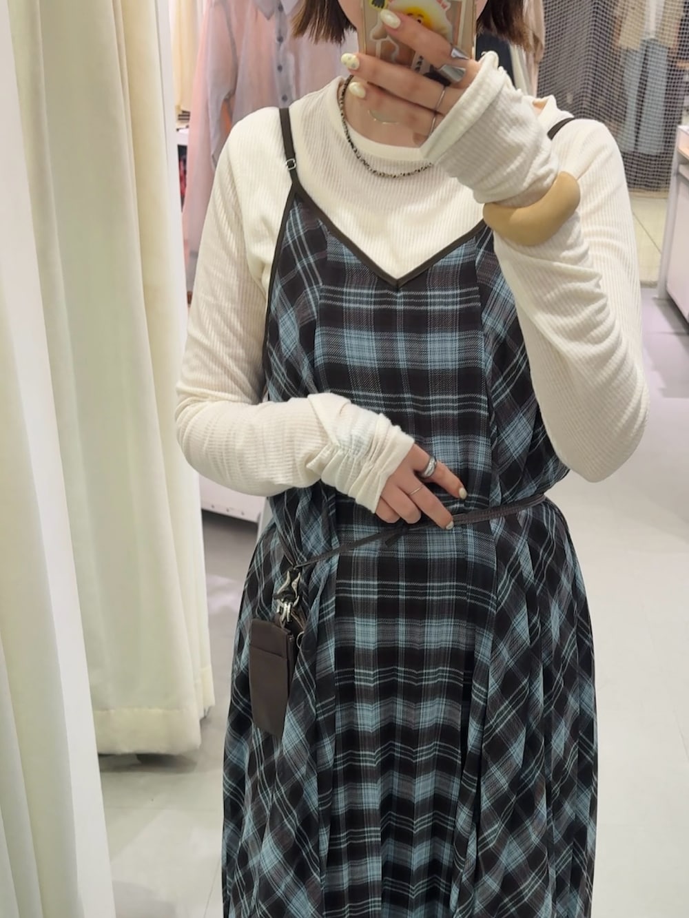 チェックプリーツキャミワンピース