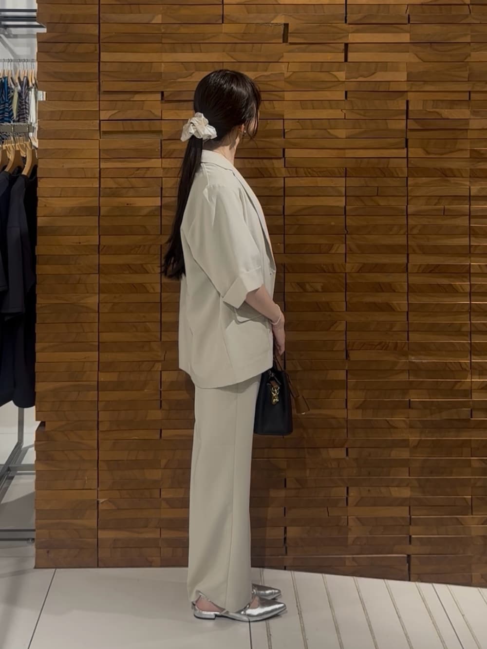 きっちりとしたコーデですが、軽い素材感で楽に着こなせるのがポイントです◎