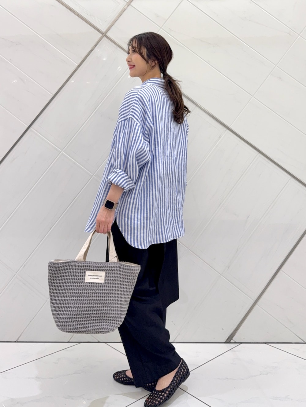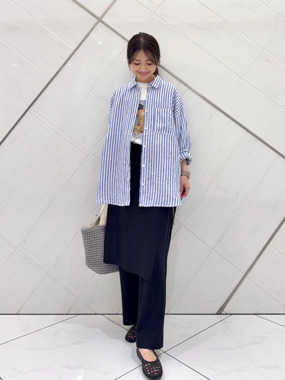 シャツはリネン素材でチクチク感がなく、柔らかな肌触りなので着心地も抜群です。