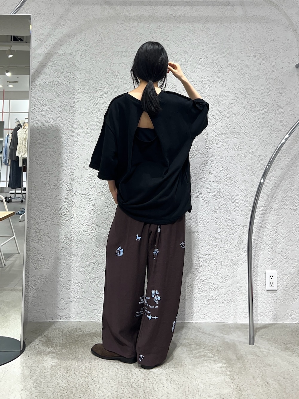 バックオープンのスウェットと、TATTOOワイドイージーパンツを合わせて着てみました。
