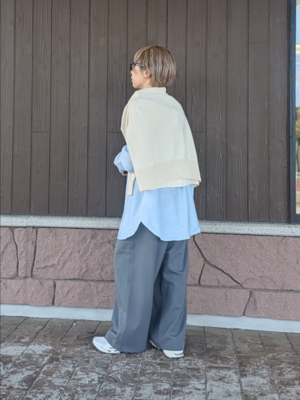 合わせたパンツはSサイズから展開があるので小柄な方にもオススメです。