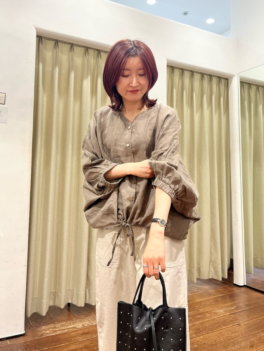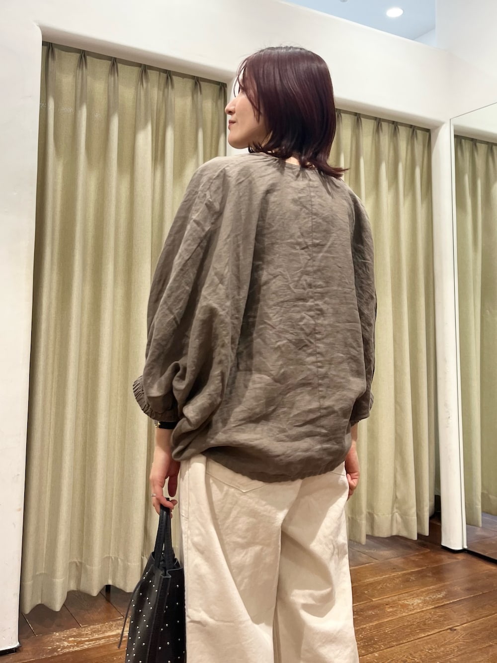 袖口はゴムが入っているのでボリューム感が可愛く、裾には紐がついているので絞って雰囲気を変えていただけます。