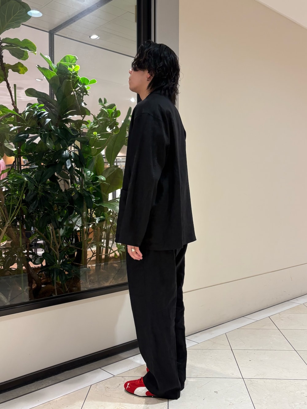 ほんのり透け感のあるリネン素材が、ブラックでも重たく見せず、春から夏まで快適に着用可能!!