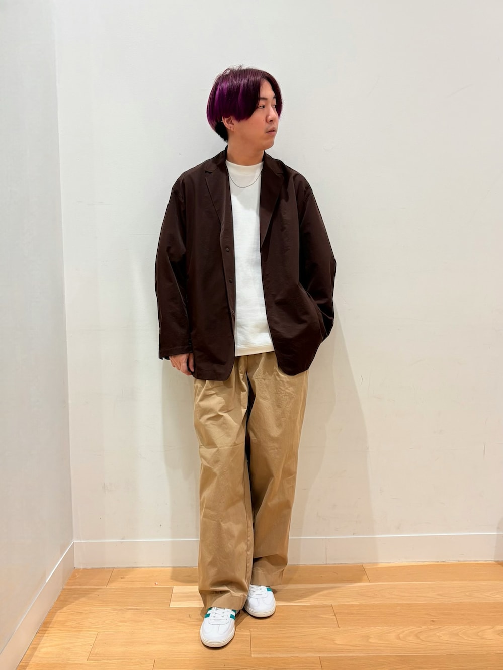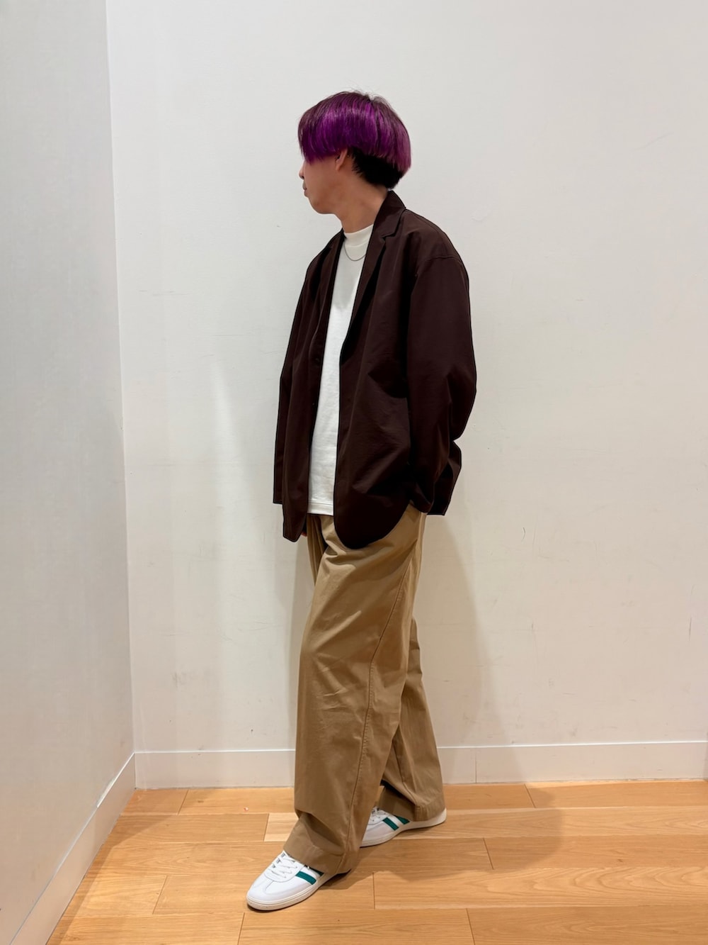 パンツは2タックとワイドシルエットが特徴の