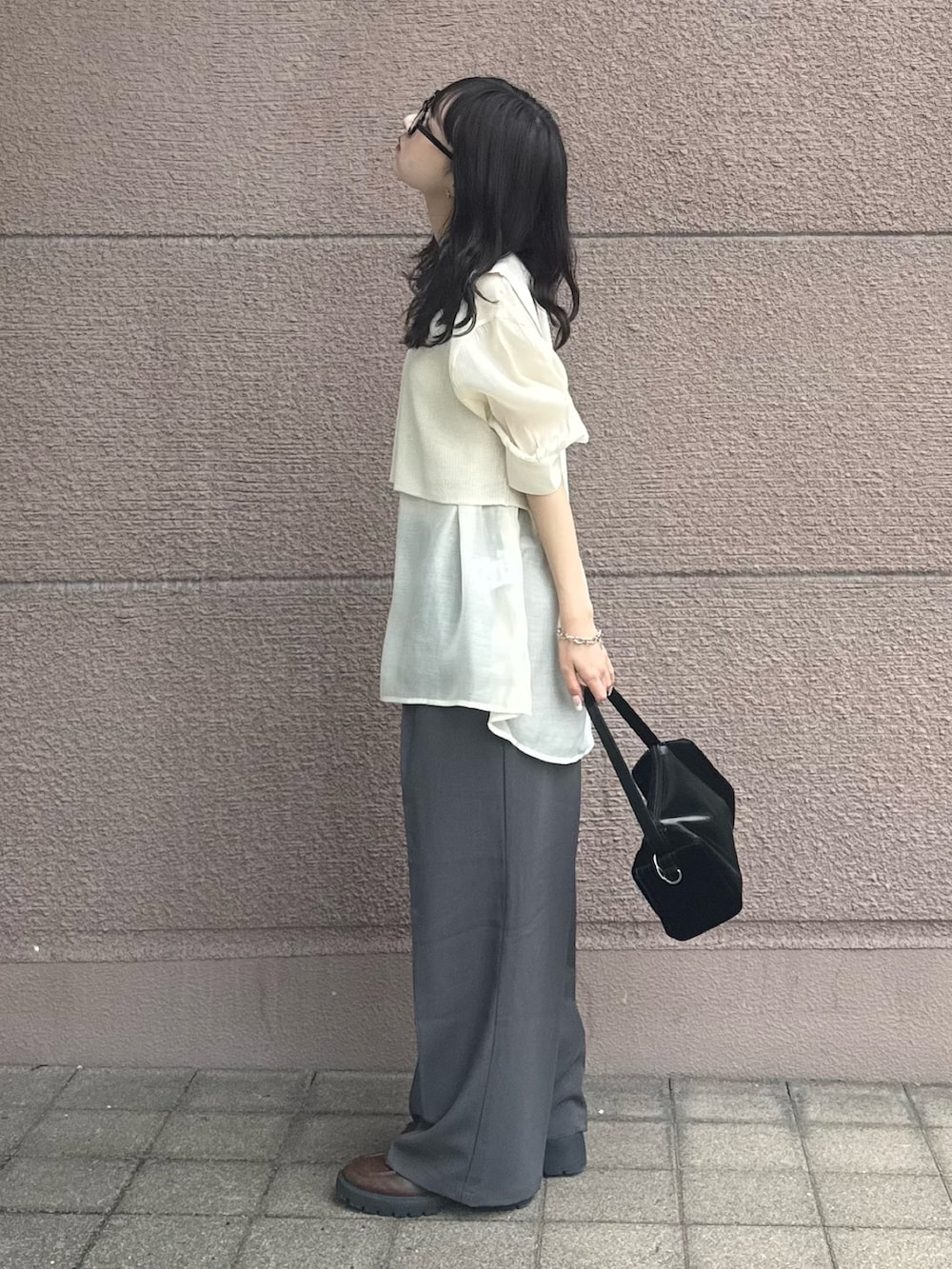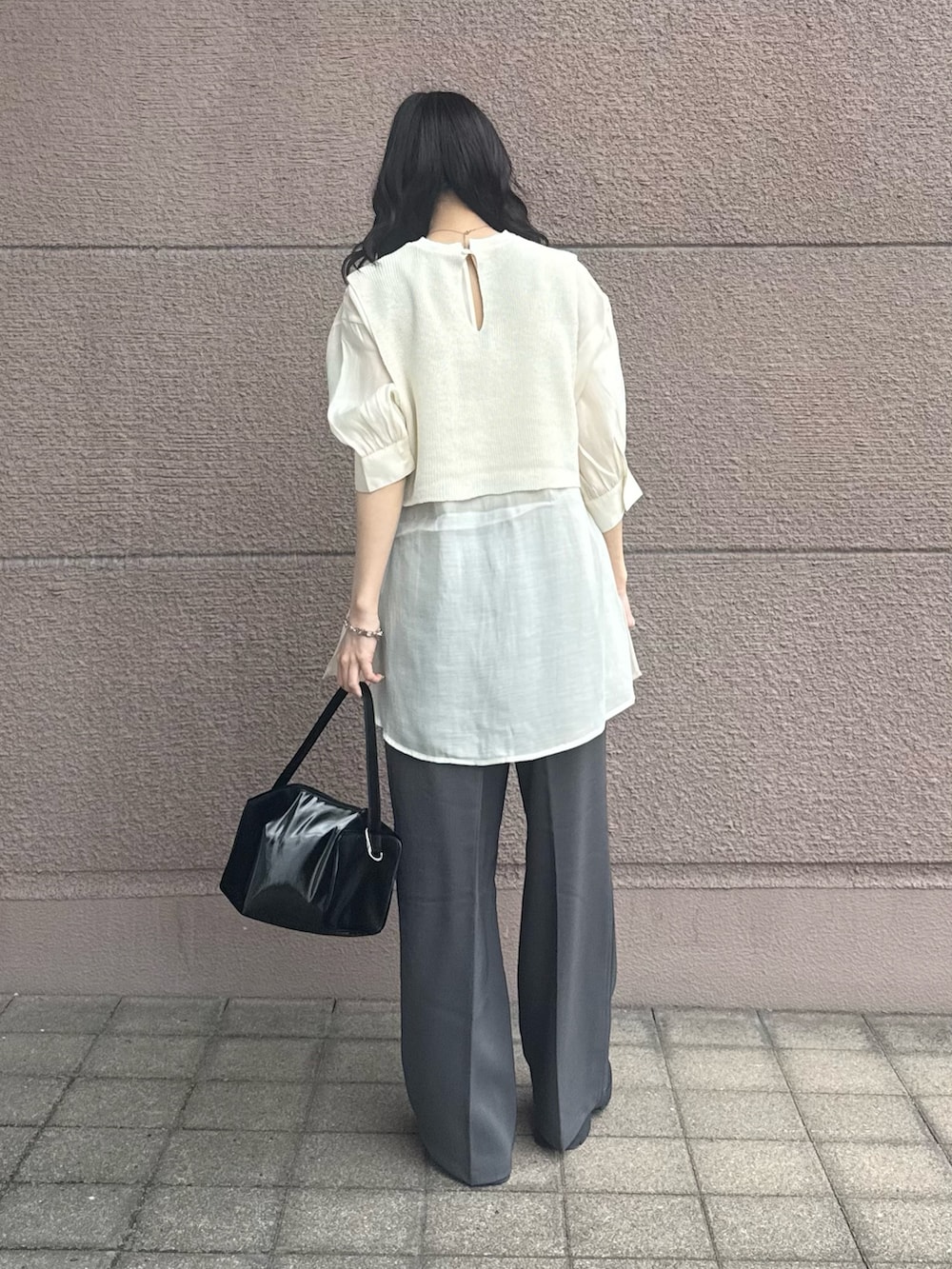 トップスはドッキングシャツでシルエットとデザインが可愛いアイテムになっています!丈の短めのニットベストが付いていて、袖の丈も長すぎす短すぎないので着ていただきやすいかなと思います!