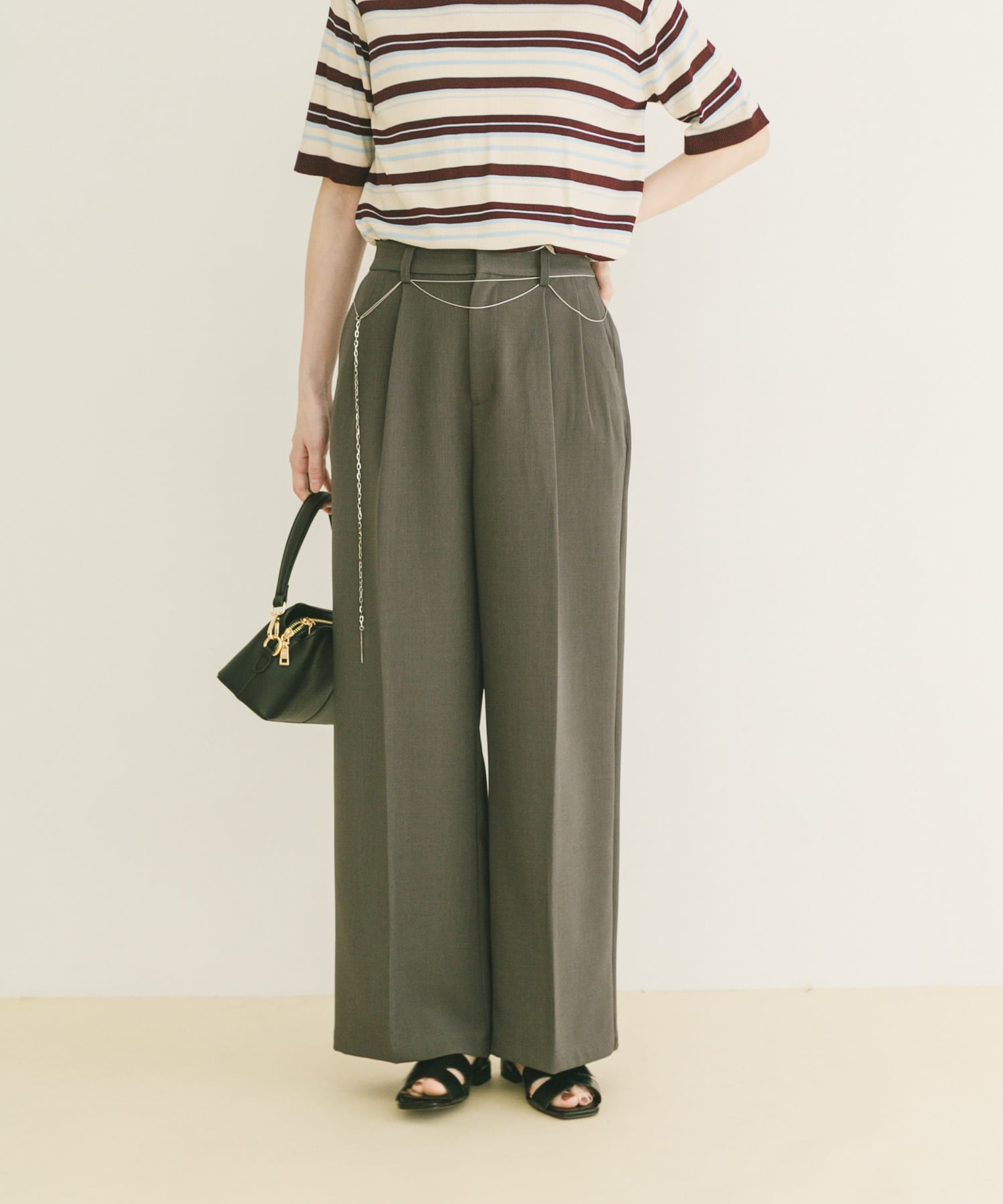 ボトムスはベルト付きパンツでシルエットが綺麗なアイテムになっています!キレイめもカジュアルなコーデでもお使いいただけるのでおすすめです!