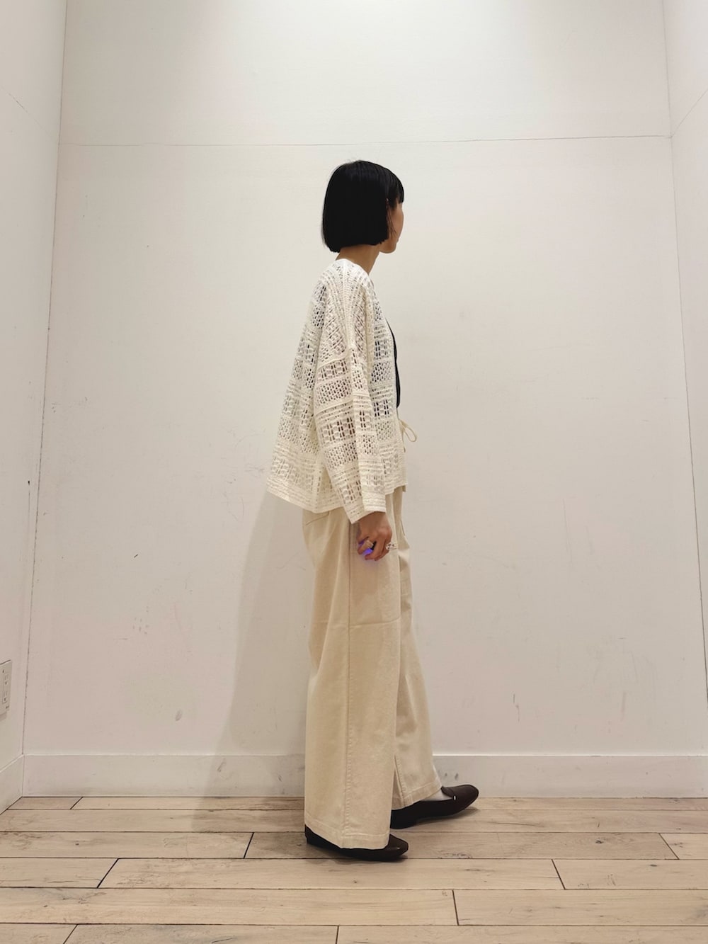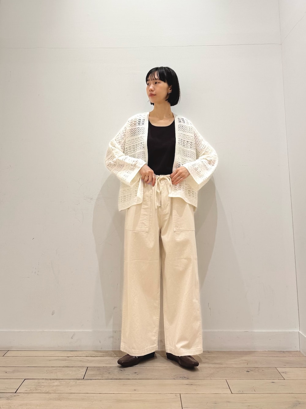 コンパクトなサイズ感なのでワイドパンツやワンピースといったゆるめのアイテムもすっきり見せてくれます◎