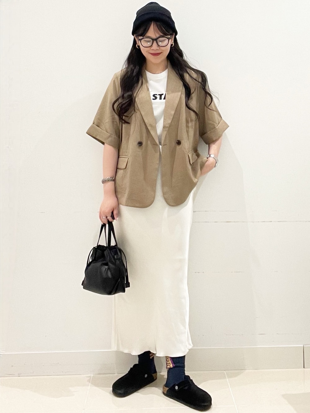今回はシンプルめなスタイルにシャツを巻いてちょいオシャコーデにしてみました!トップスはブラウンをベースとしたボーダーTシャツです。ルーズサイズなので1枚で着ても可愛いです。パンツは通気性に優れたリネンライクスラックスです。Tシャツのカラーと相性の良いブルーのシャツを巻いて小洒落スタイルにしてみました!