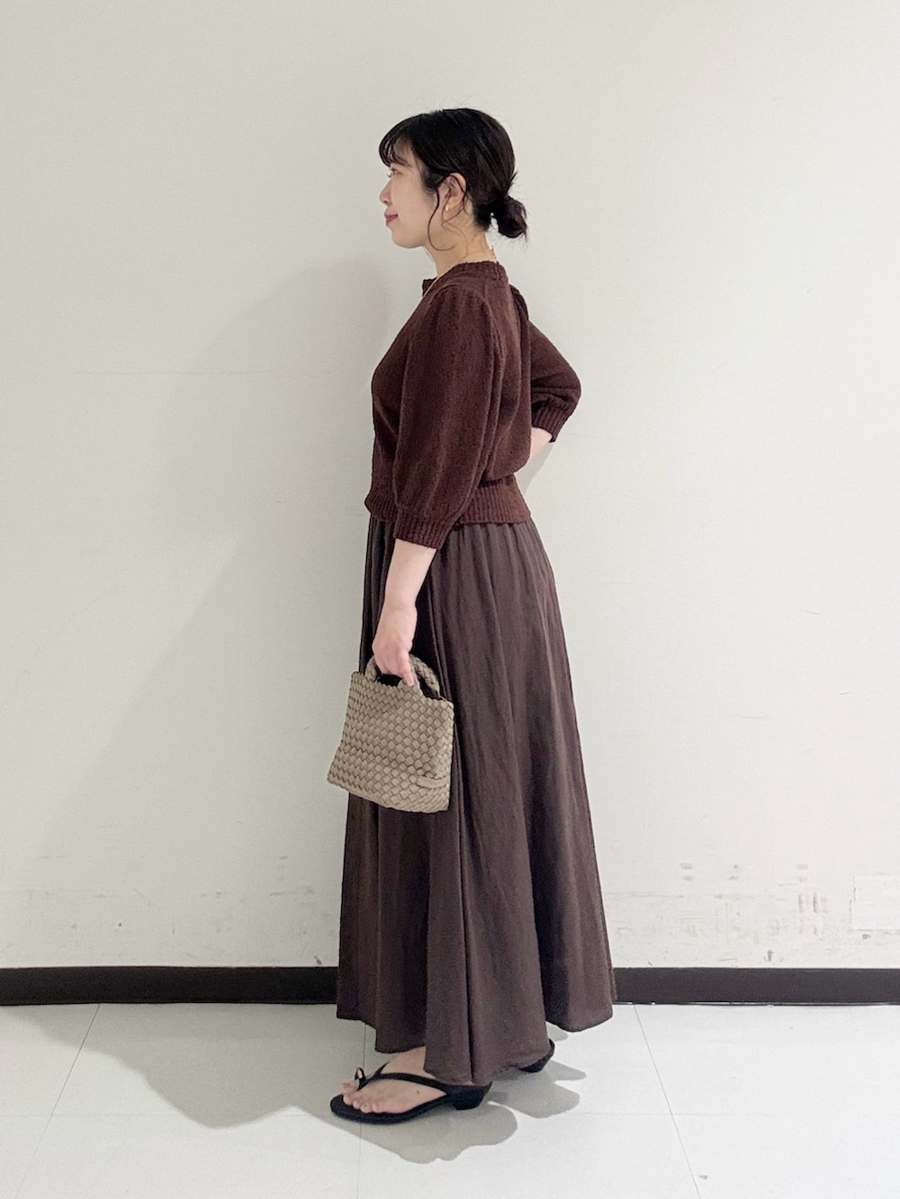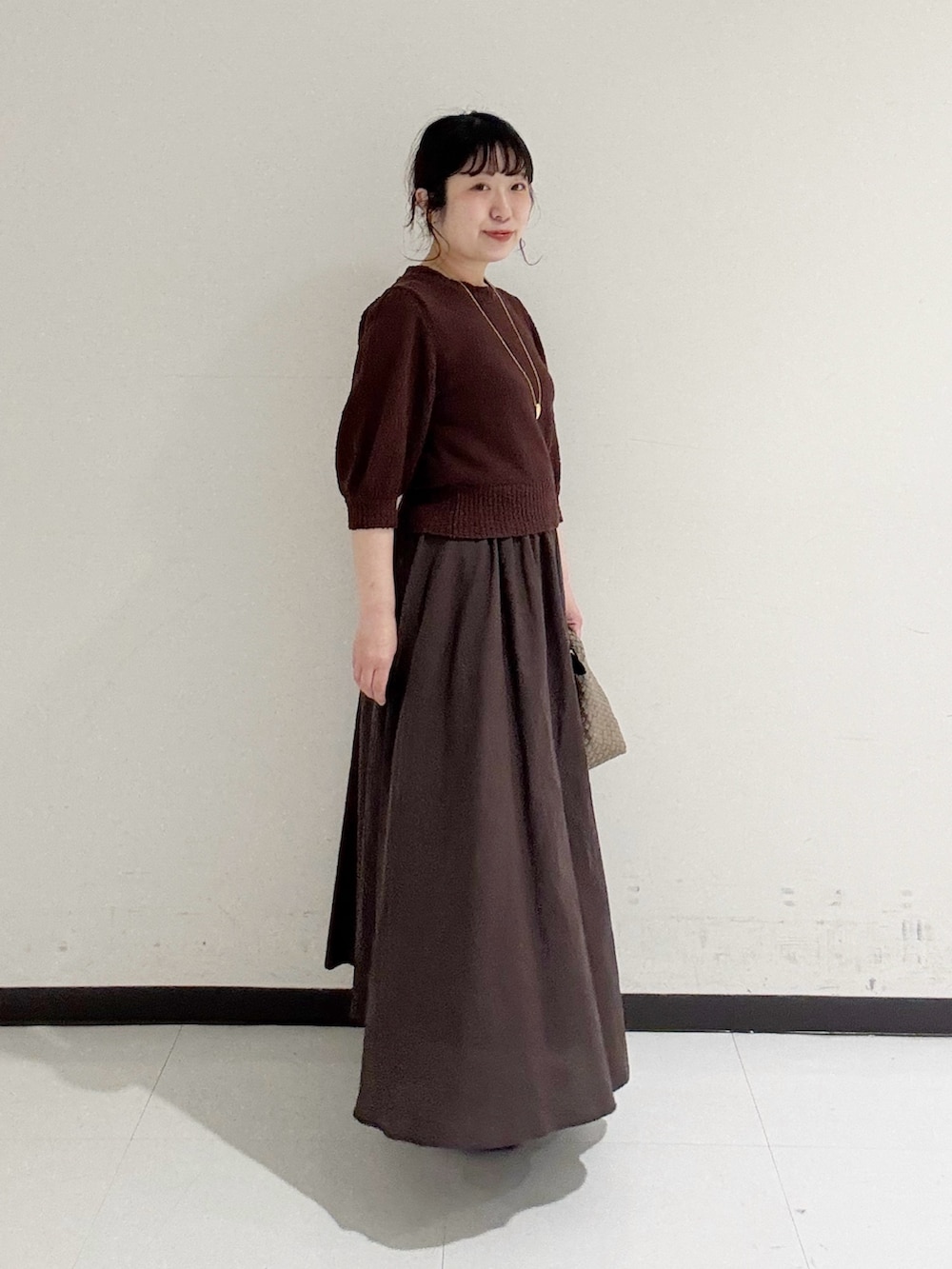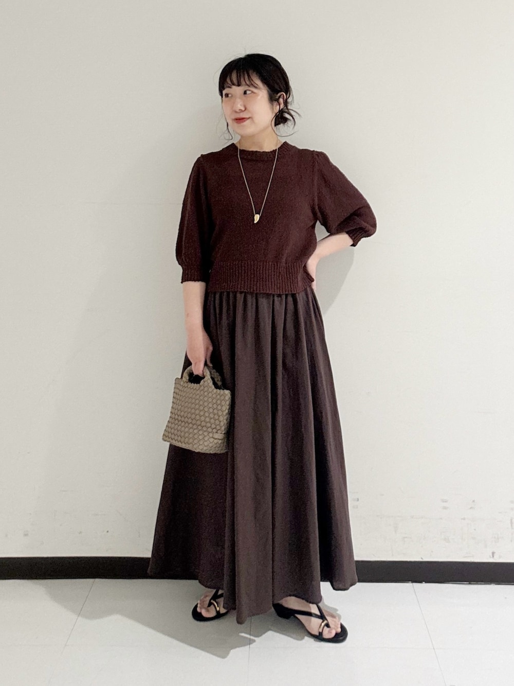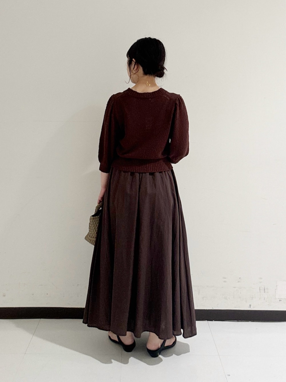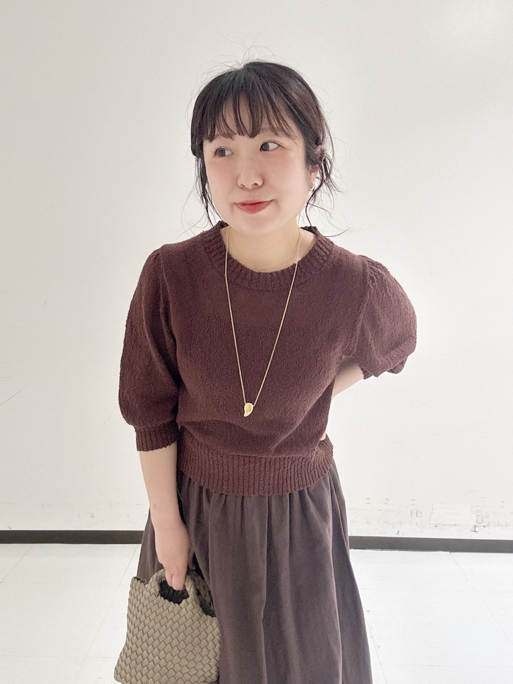 袖のボリューム感と短丈でスッキリのメリハリが可愛くて小柄な方にもオススメのニットです。