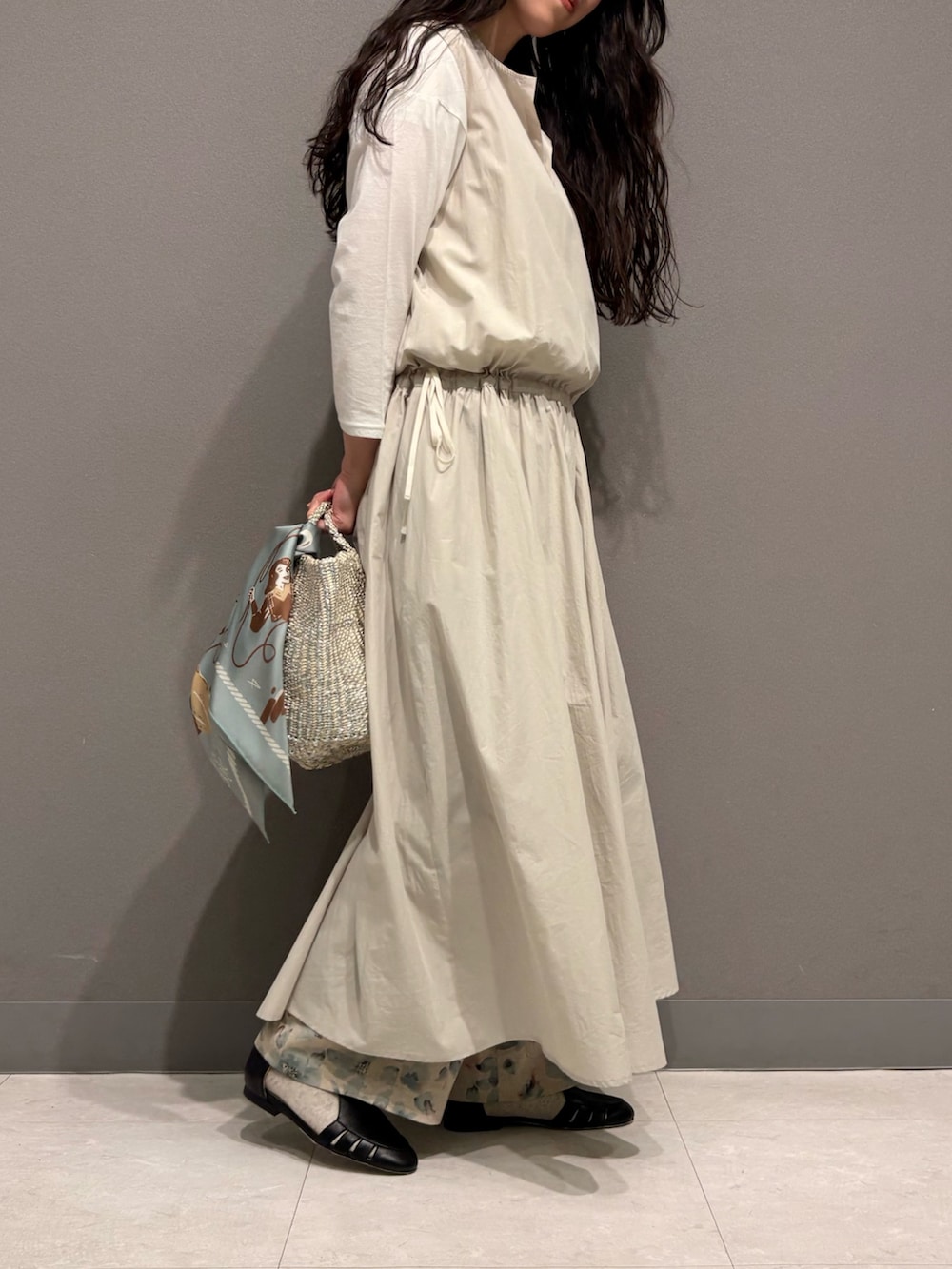 【タイプライターギャザーワンピース/ IVORY】