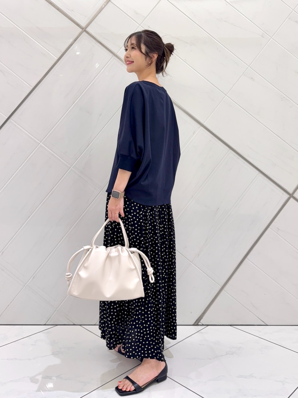 トップスは柔らかな肌触りで着心地も良く、シンプルなデザインなのでボトムスを選ばず着回しの効く1着です。