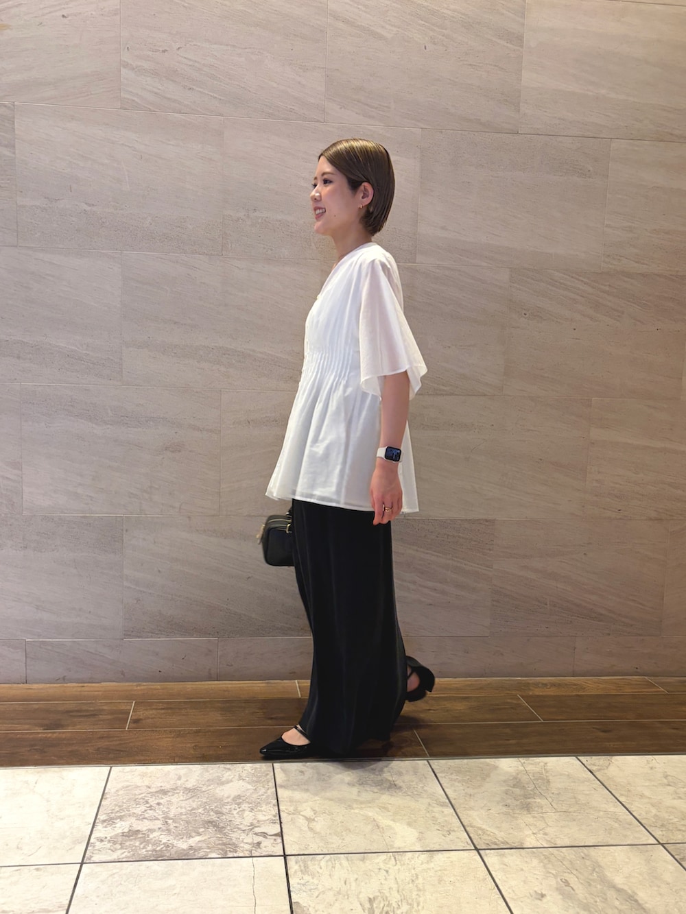 ウエストにタックデザインがあるので、低身長でもスタイルアップが叶います!