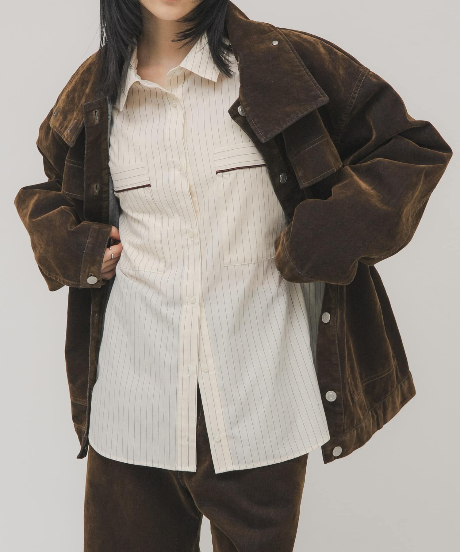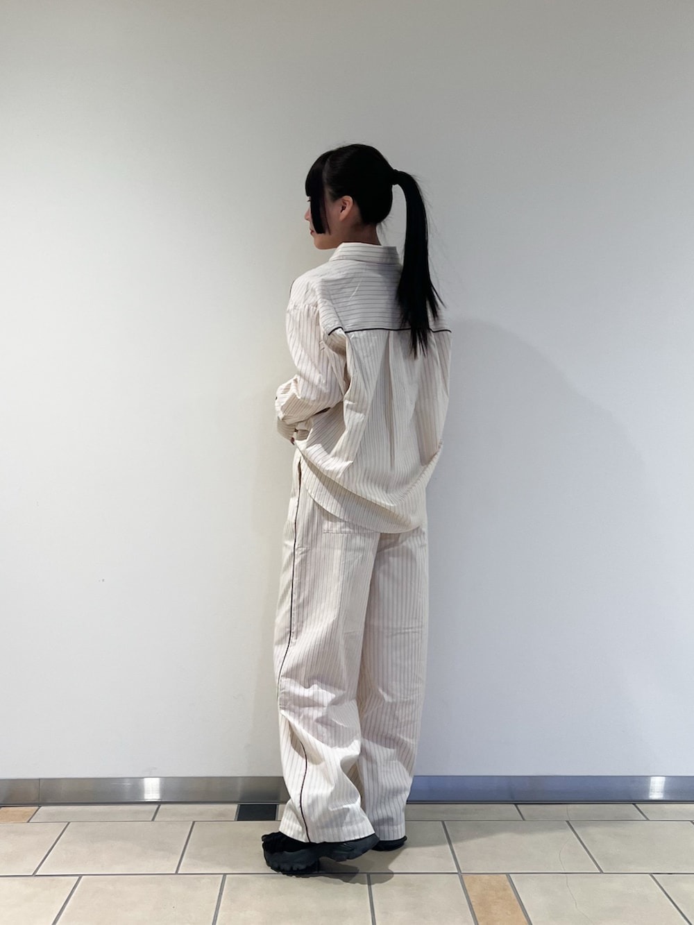 シンプルにセットアップで着てみましたが、インナーにレーストップスやキャミを合わせたコーデも洒落見えします◎