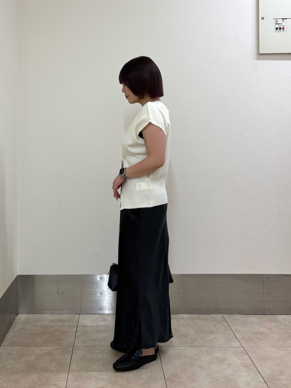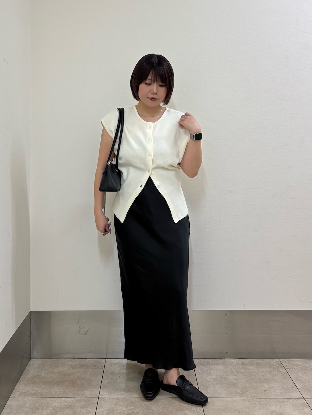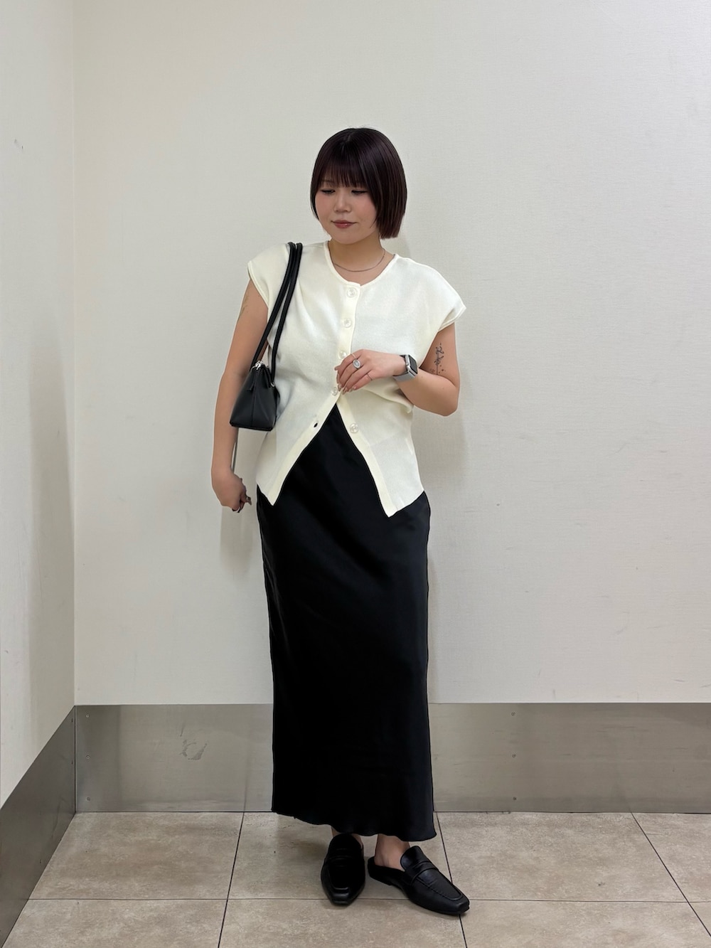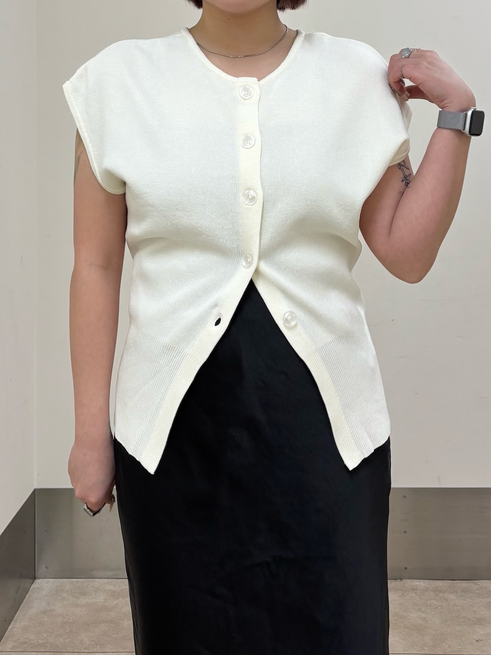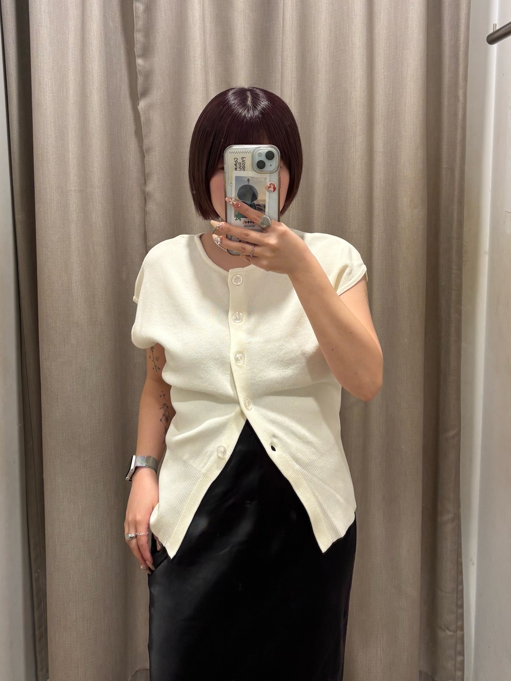・トップスの下のボタンを開けて腰回りをカバー.ᐟ.ᐟ.ᐟ