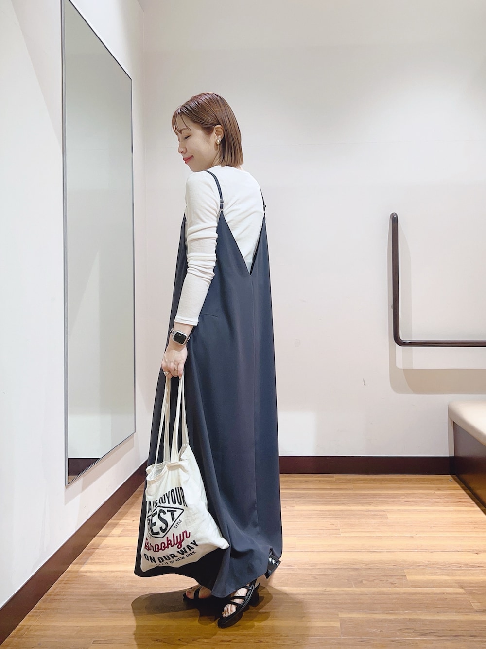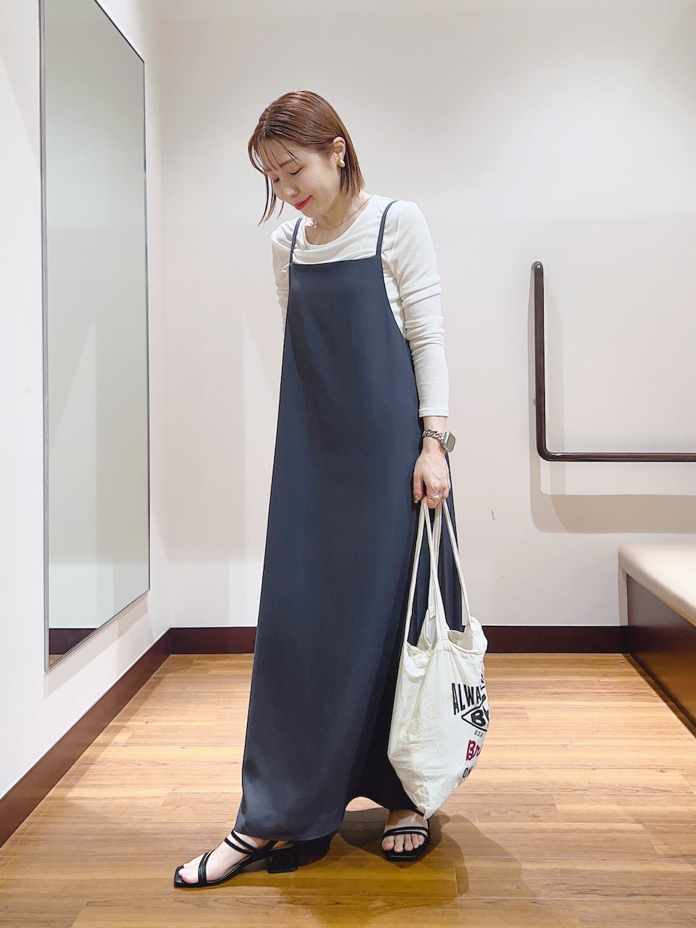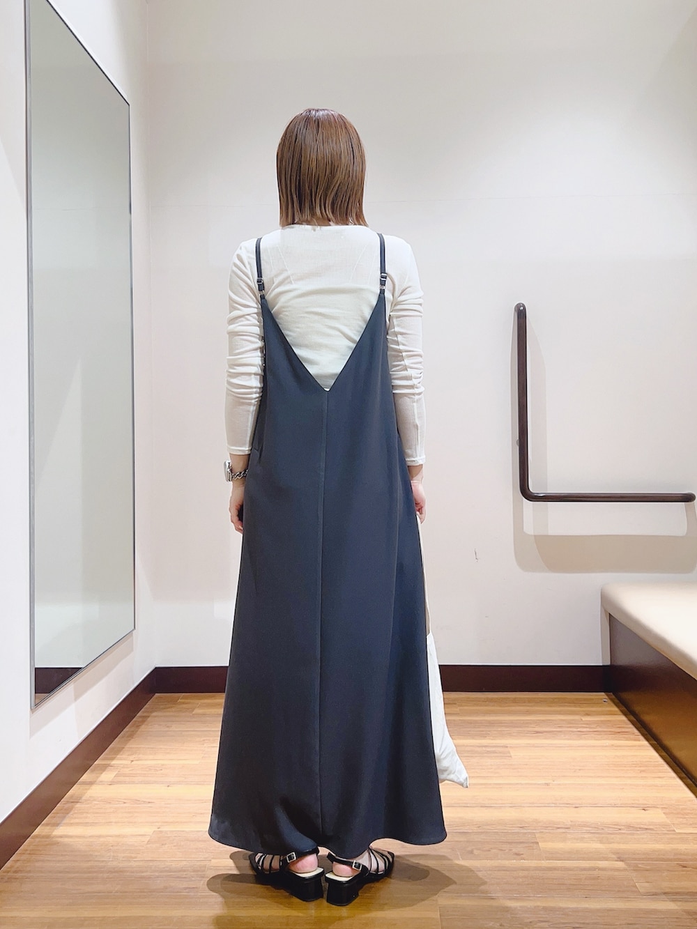 キャミワンピースは肩紐で長さ調整できるので、低身長さんも高身長さんも気にせず着て頂けます😍