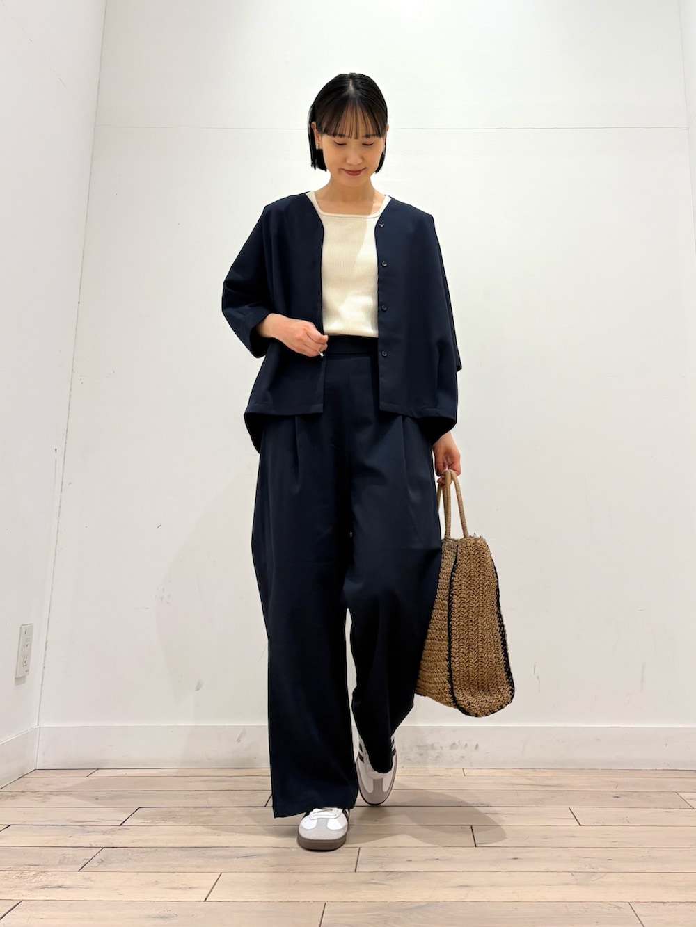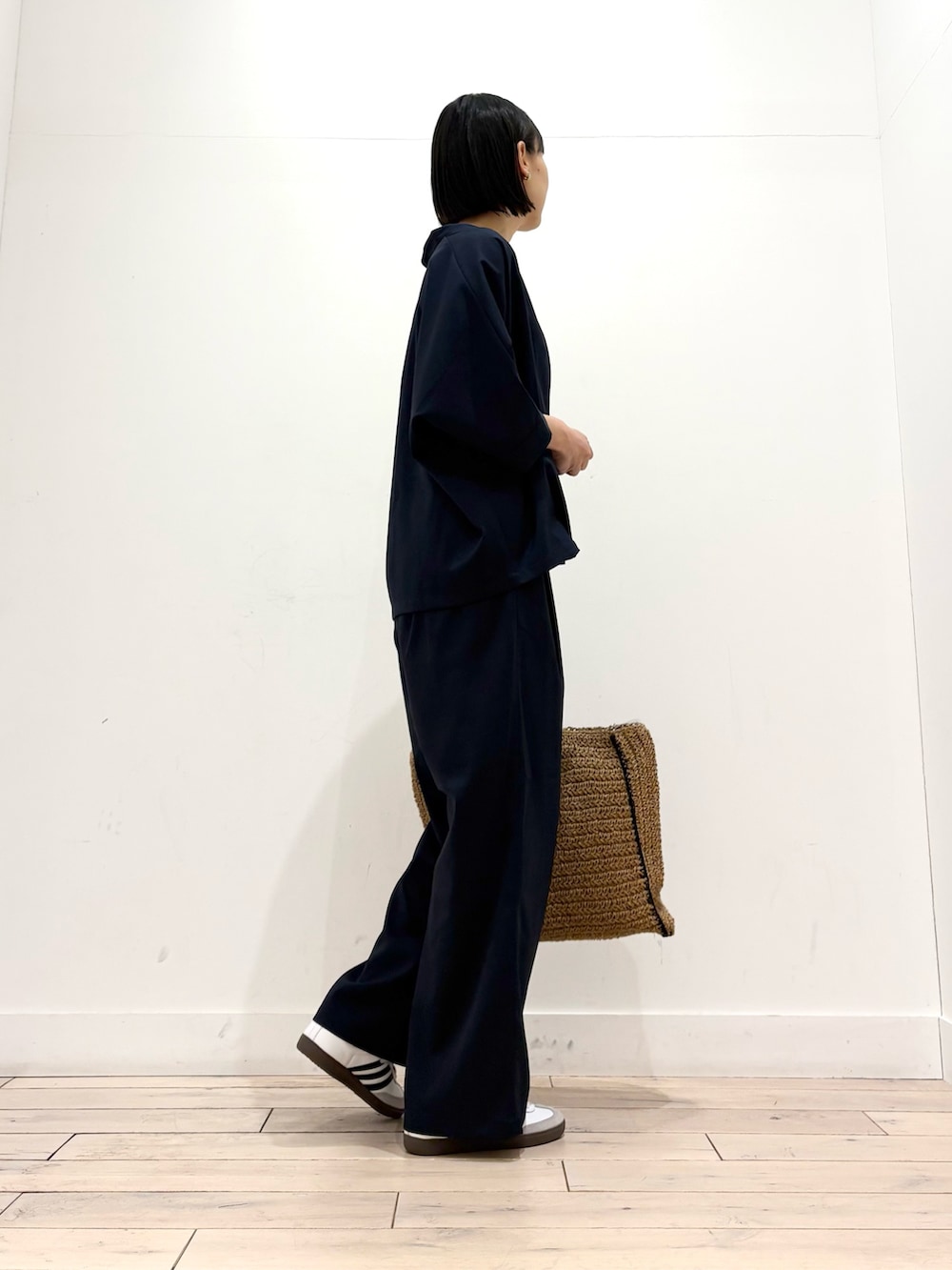 同素材でパンツもあるのでセットアップでコーディネートしてみました^ ^