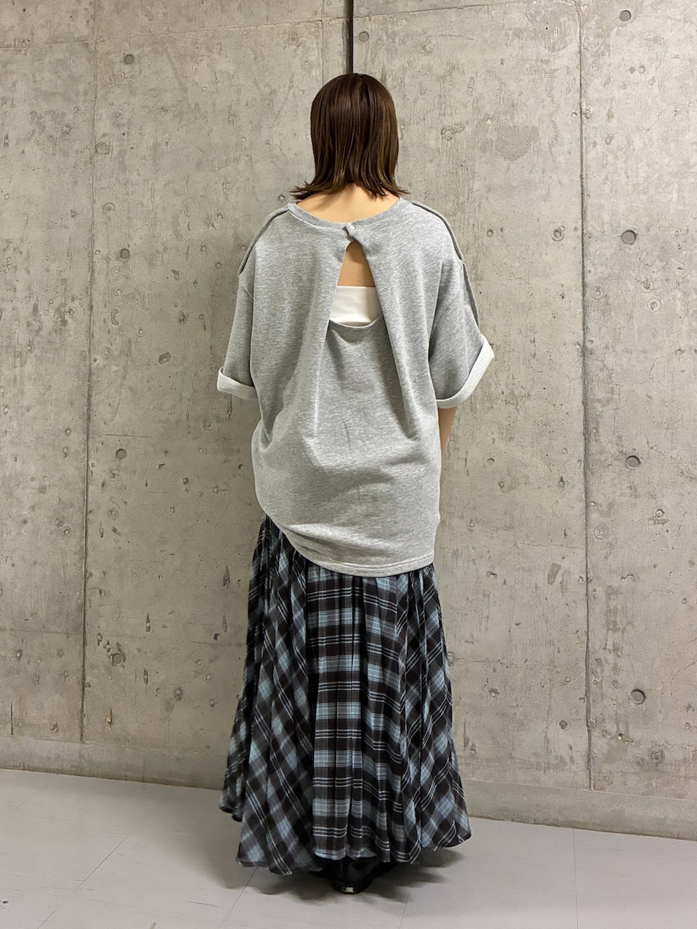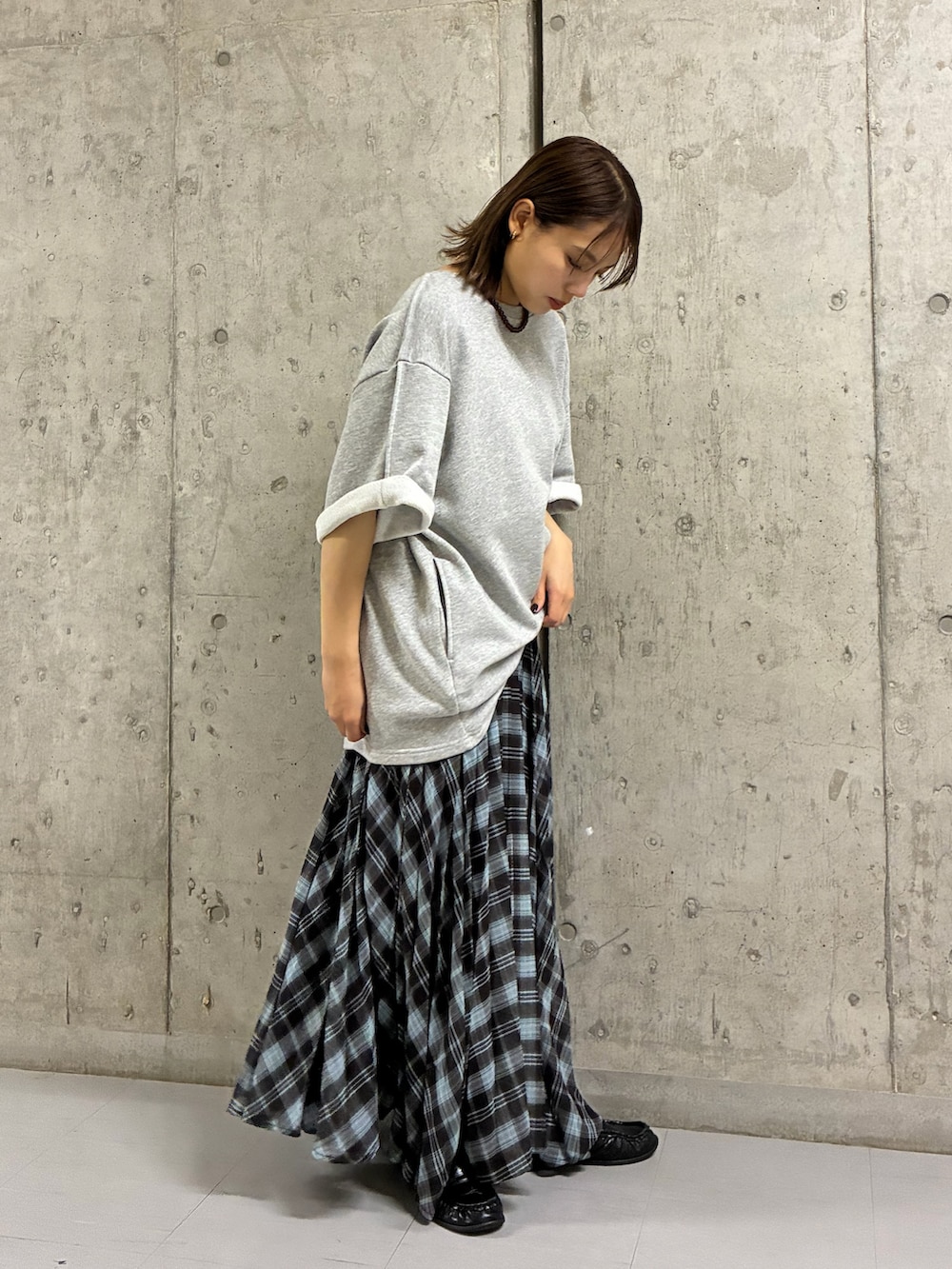 バックオープンが大人っぽいスウェットと大人気のチェックプリーツスカートでゆるっとコーデ🦋