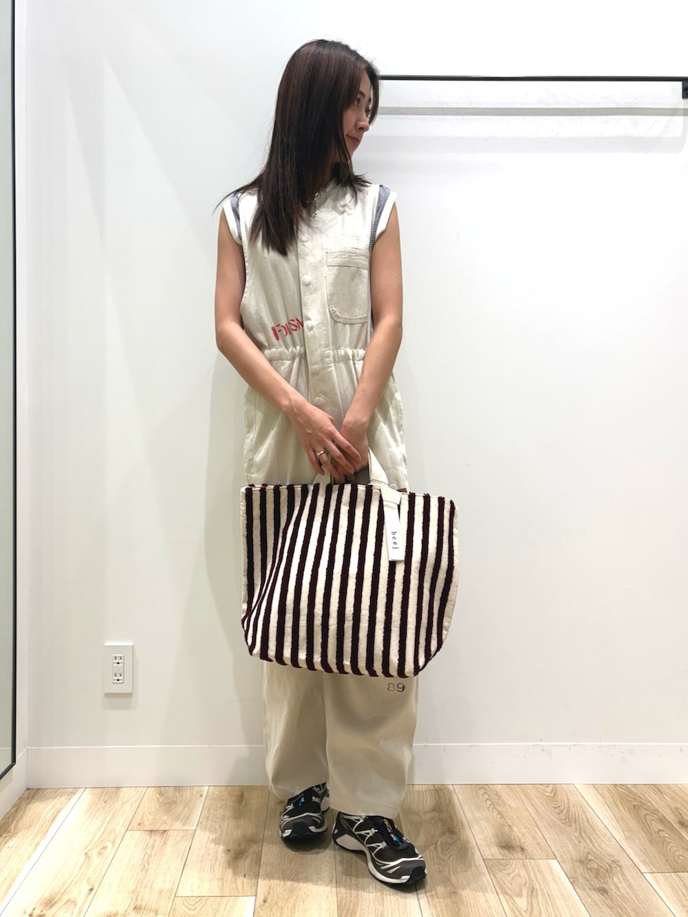ストライプバッグをアクセントにして、シンプルながらも存在感のあるスタイリングに^^
