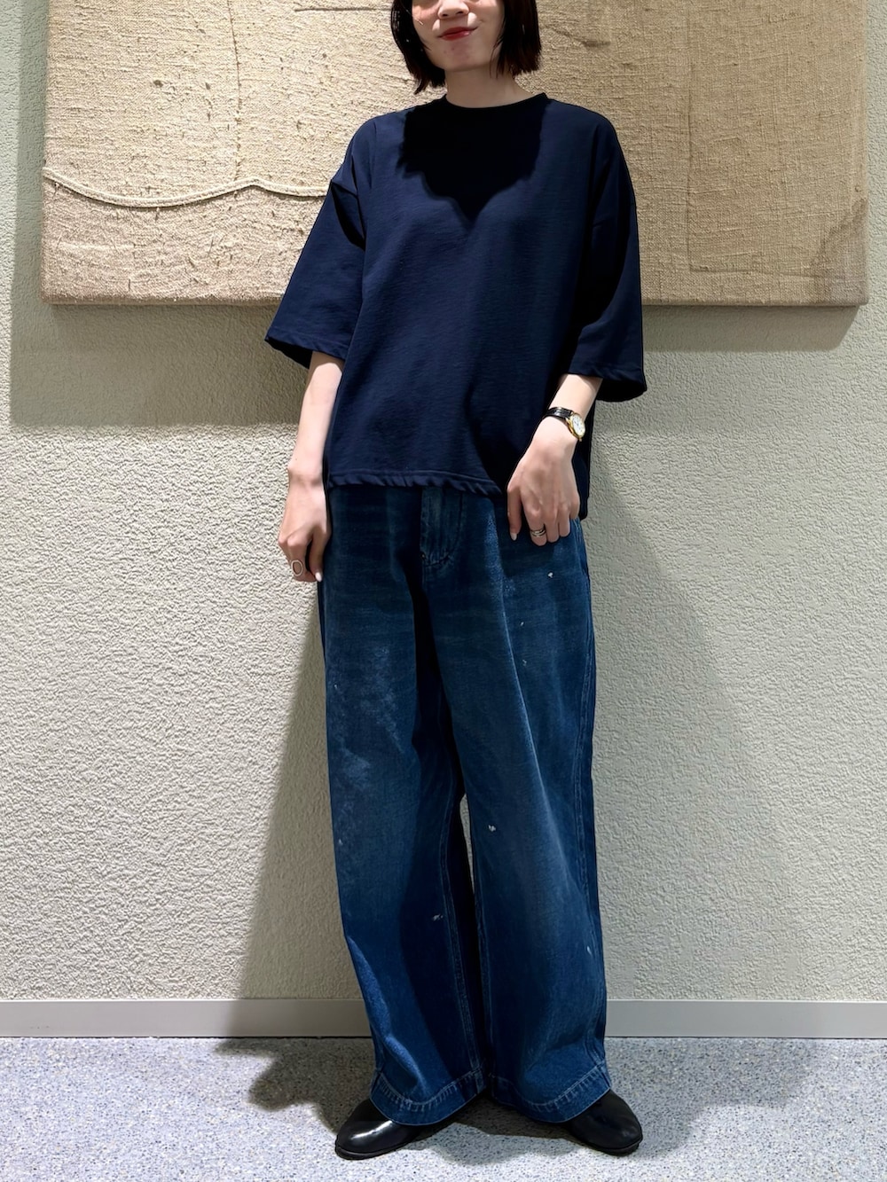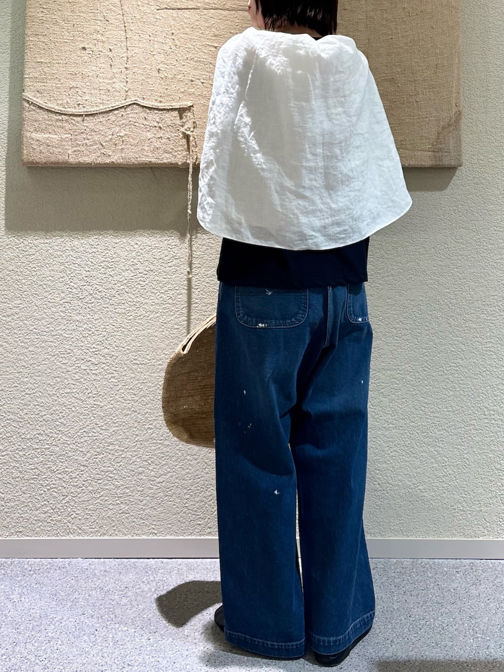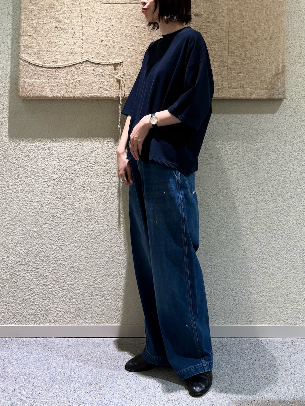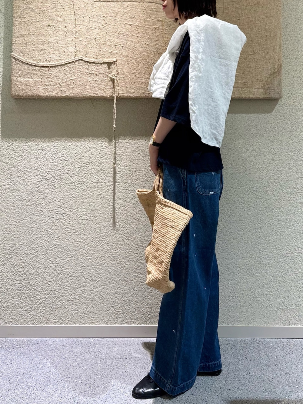 ペンキを飛ばしたUSED加工と、太めのゆるっとしたシルエットが洒落感のあるデニムです。