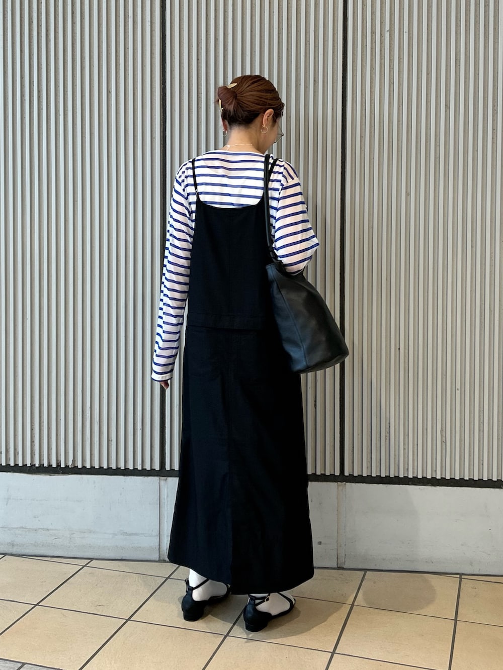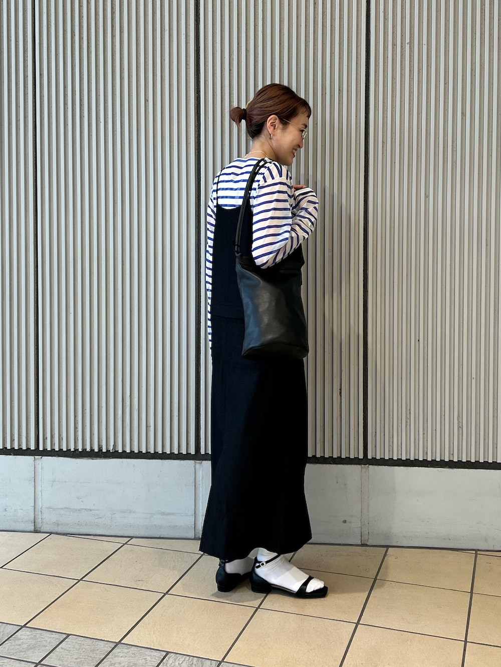 カジュアルになり過ぎないように、シアー感のあるボーダーロンTと小物はブラックでまとめました。