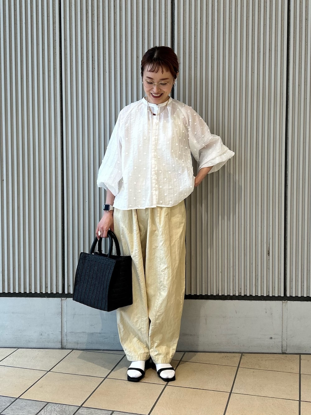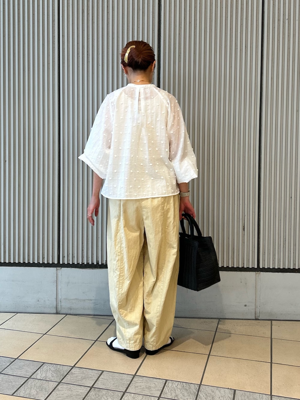 着丈が短めなので、ワイドシルエットのパンツと合わせてみました。
