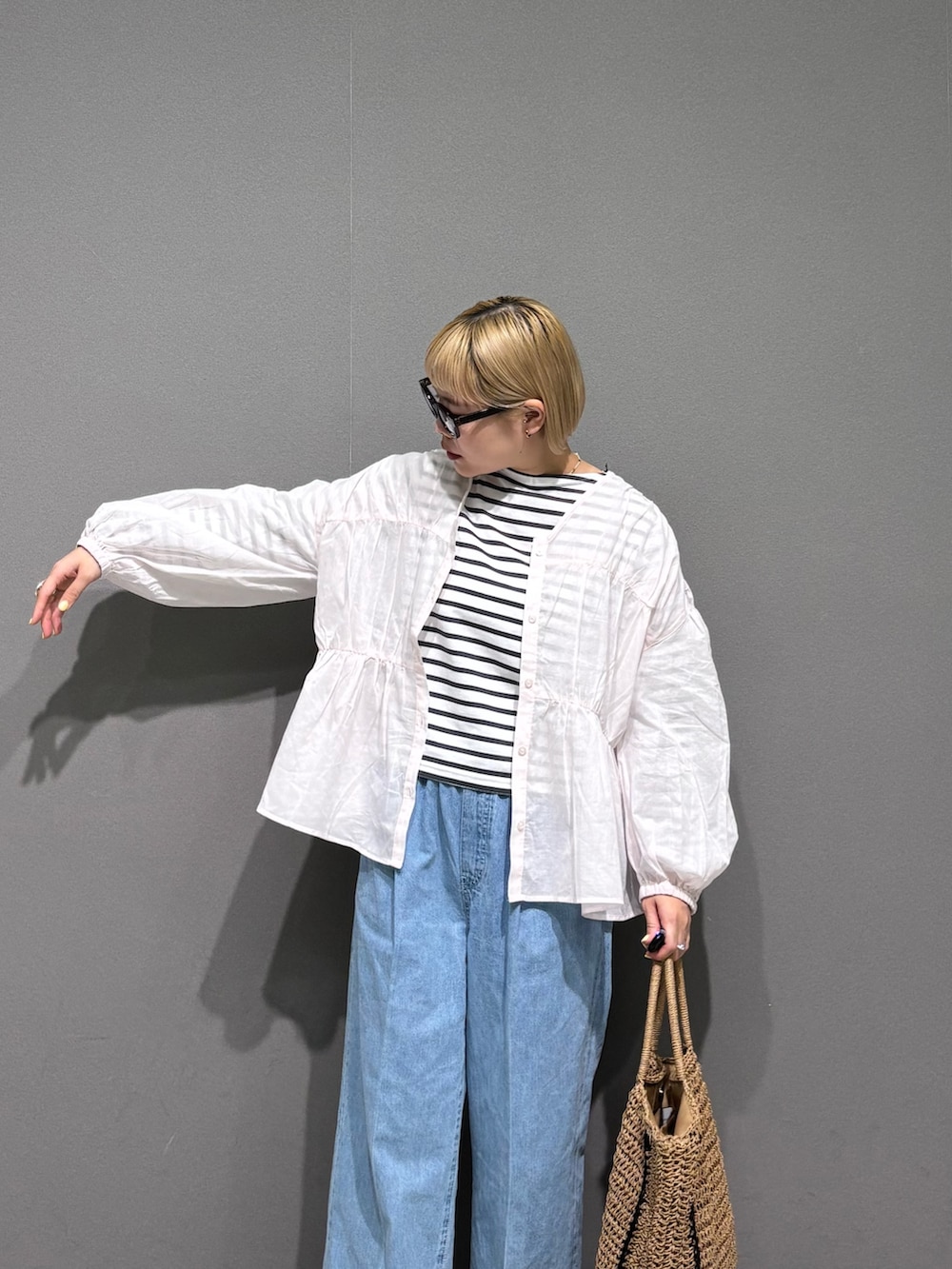 DOORS『UR TECH』コットンギャザーVネックブラウス- 着用カラー: