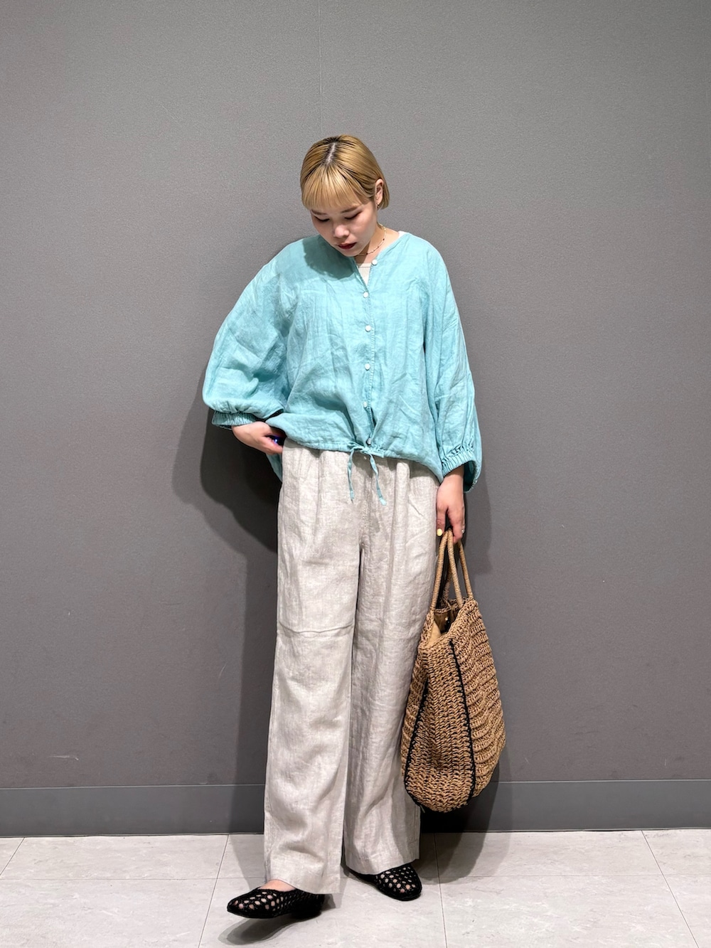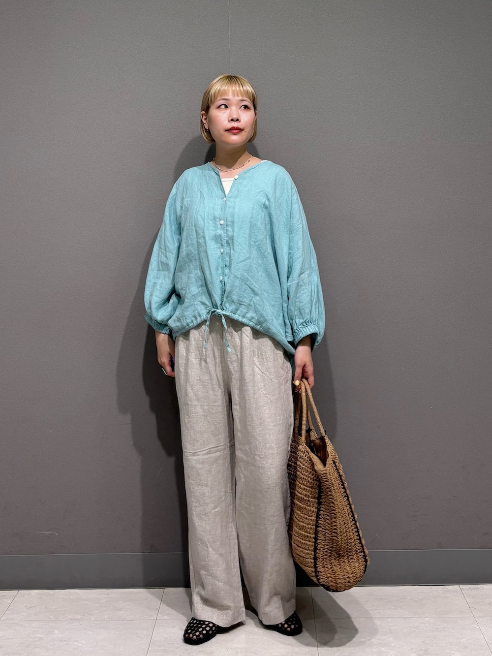 リネンアイテムでスタイリング。