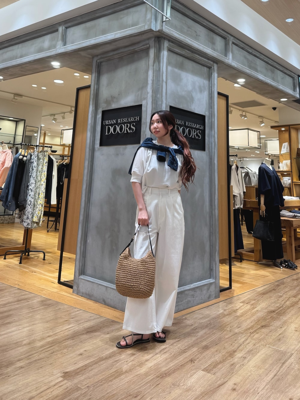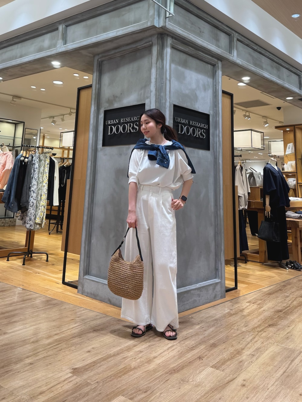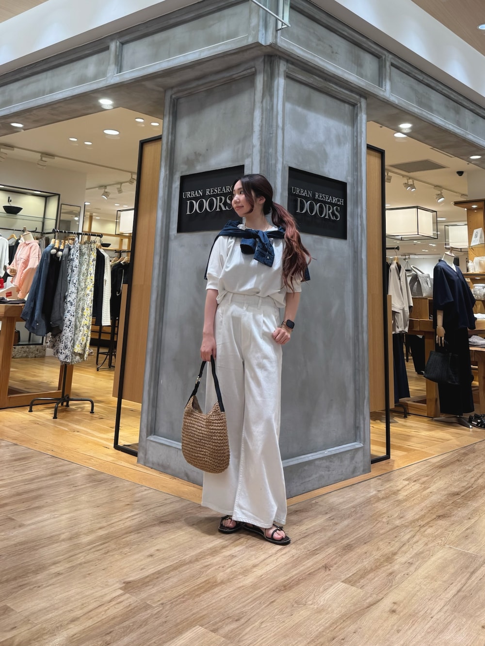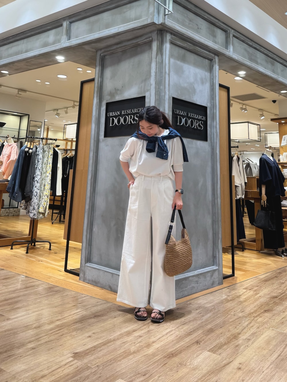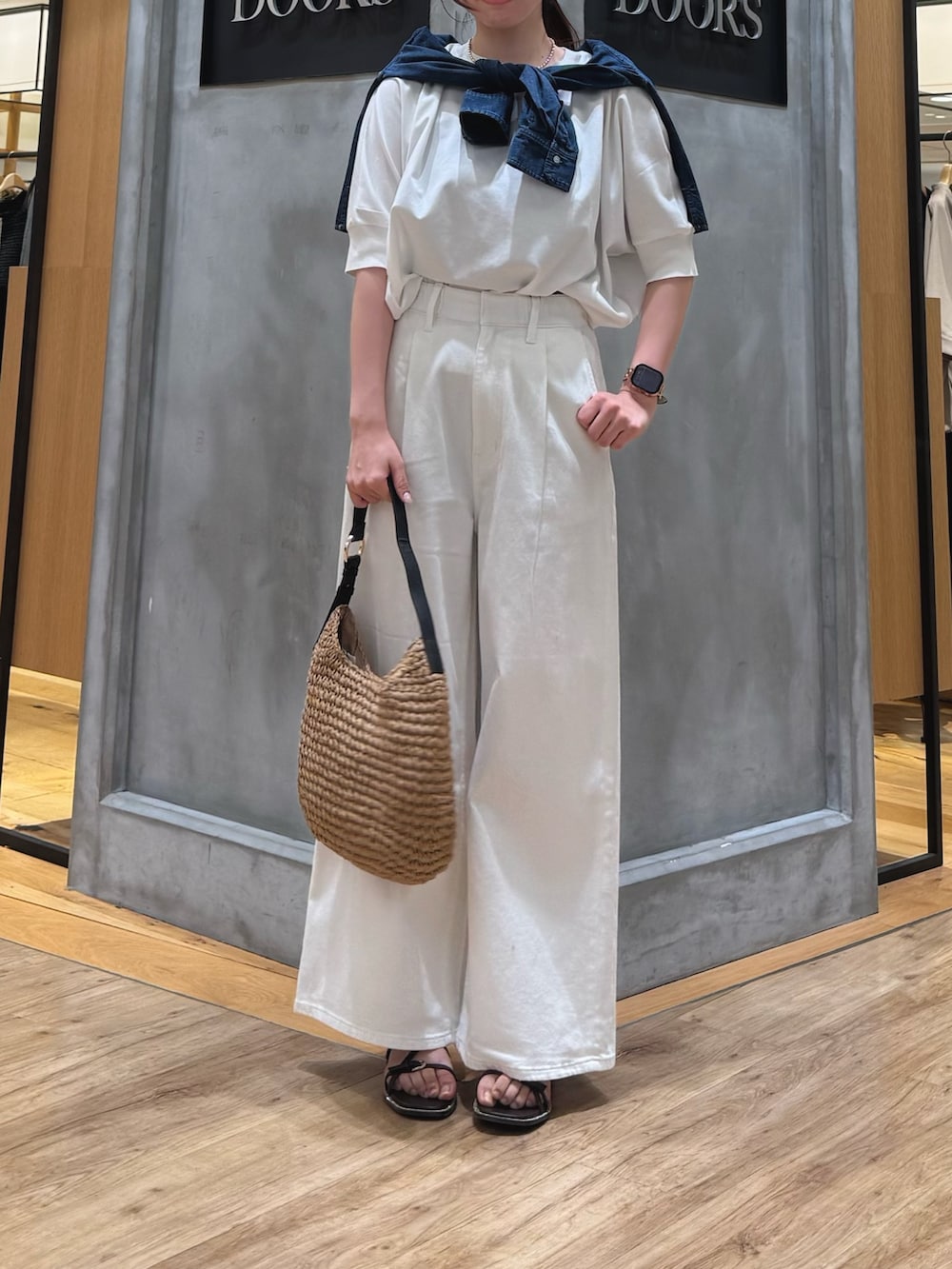 また、今回はコーデのアクセントにショート丈のデニムシャツを肩に巻いてみました!!