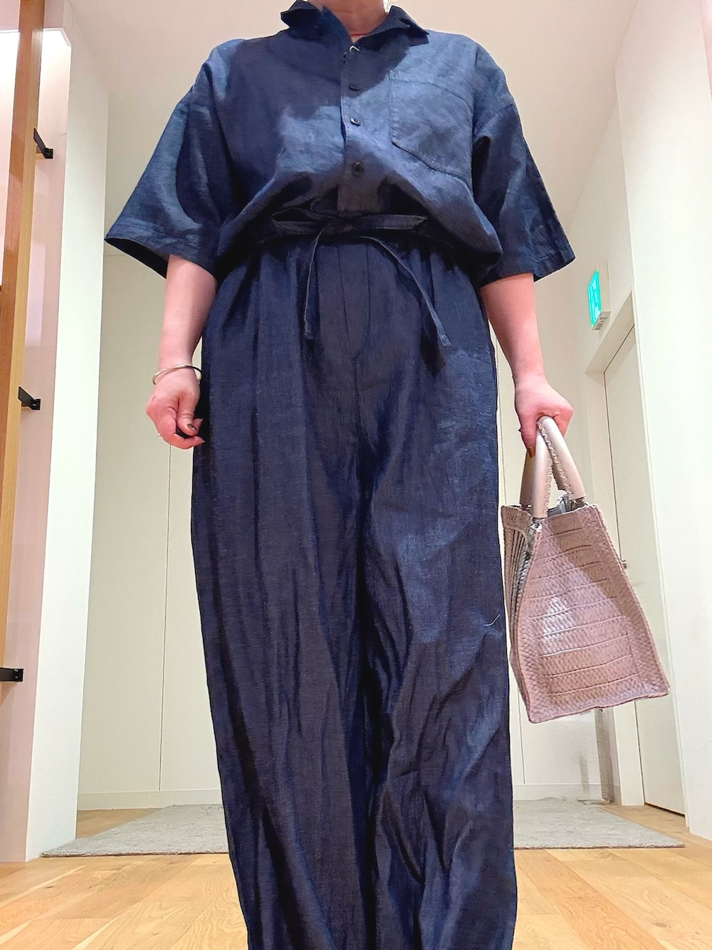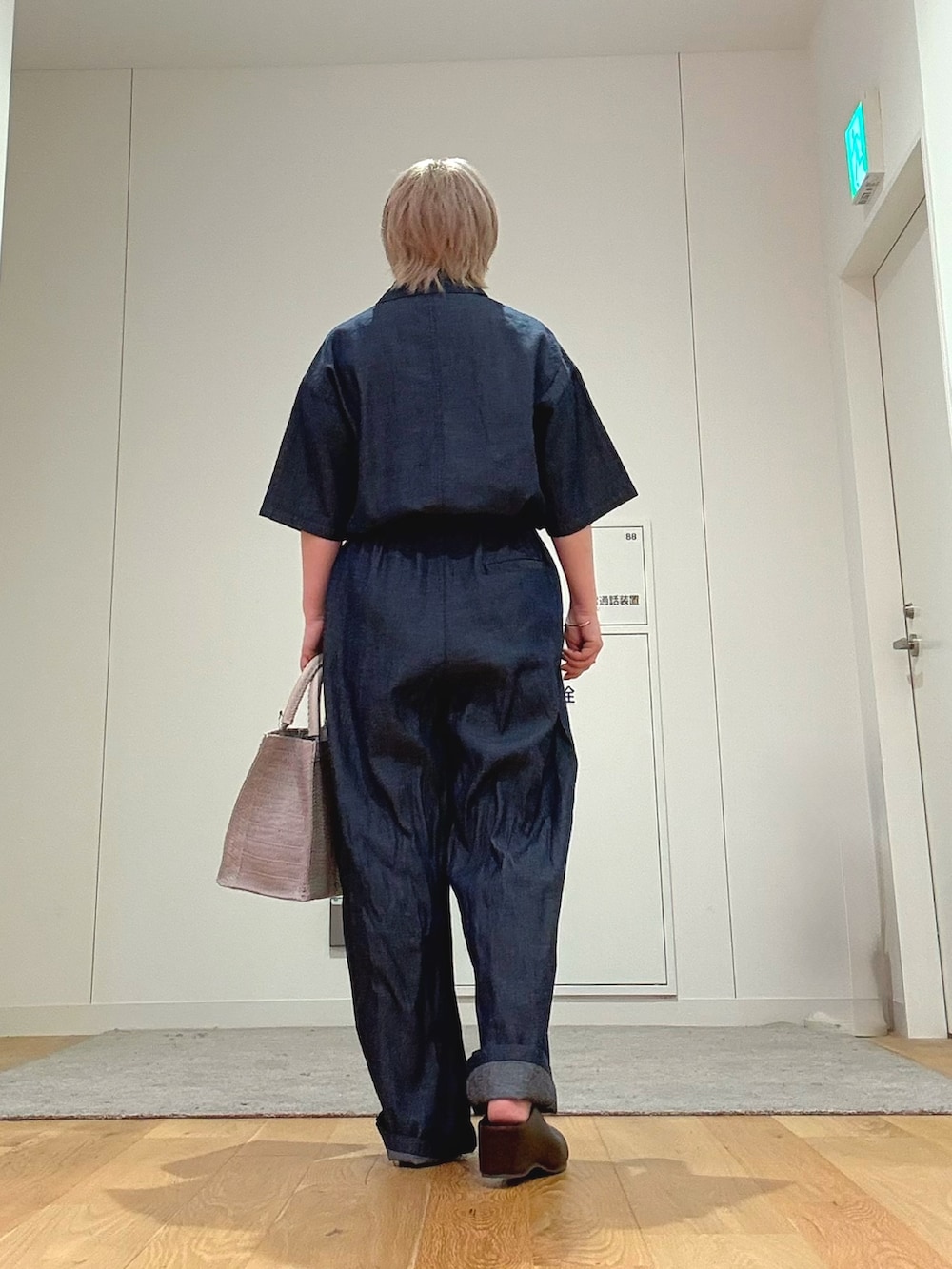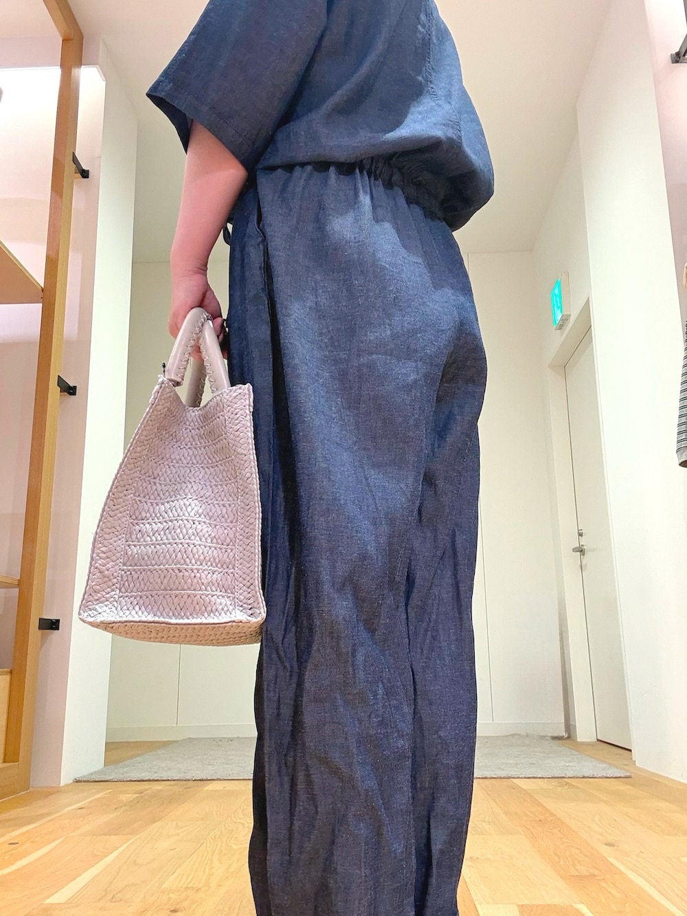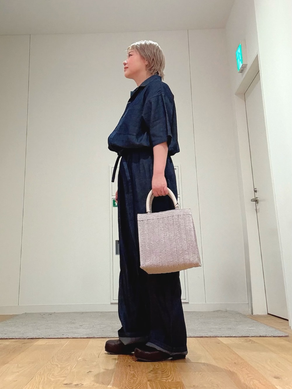 今回は柔らかいカラーのバッグを合わせて、抜け感のある大人カジュアルに仕上げました。