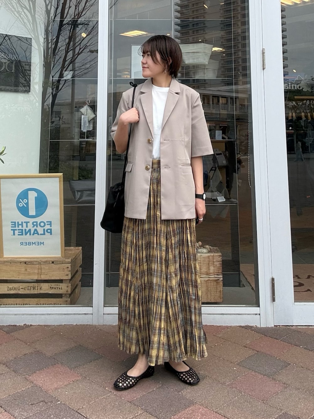 チェック柄でも落ち着いた配色なので派手になりすぎず、コーデに程よいアクセントをプラスしてくれます。