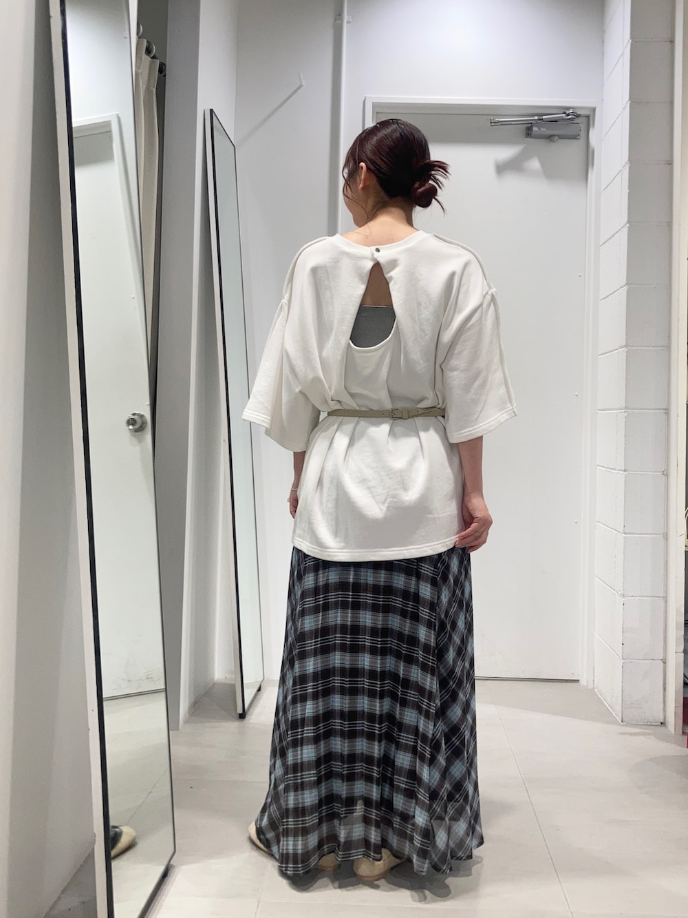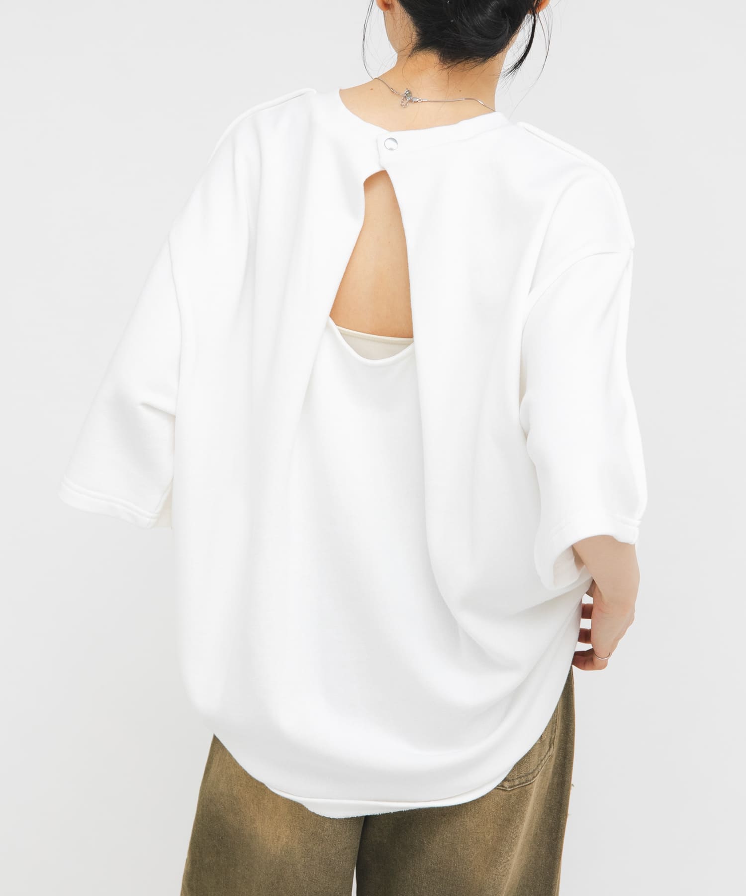 五分袖のゆったりとしたシルエットのスウェットは、背中が開いたデザインでほど良い抜け感✨