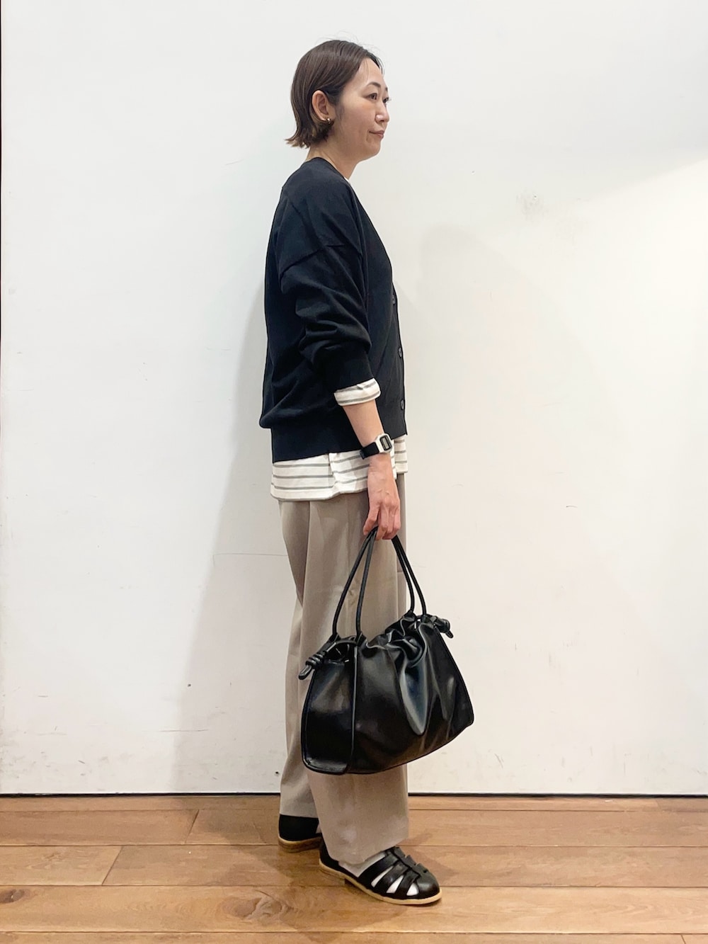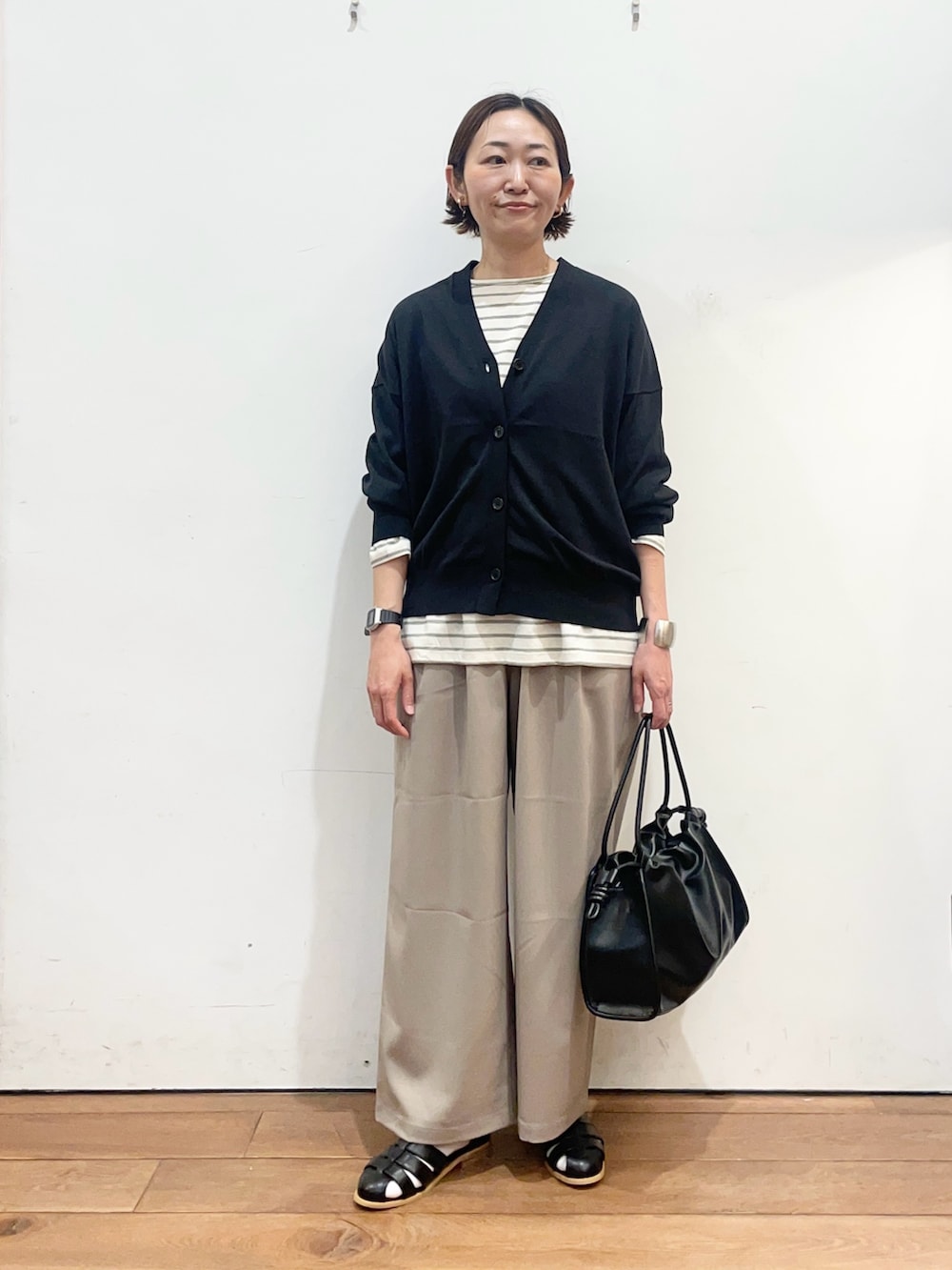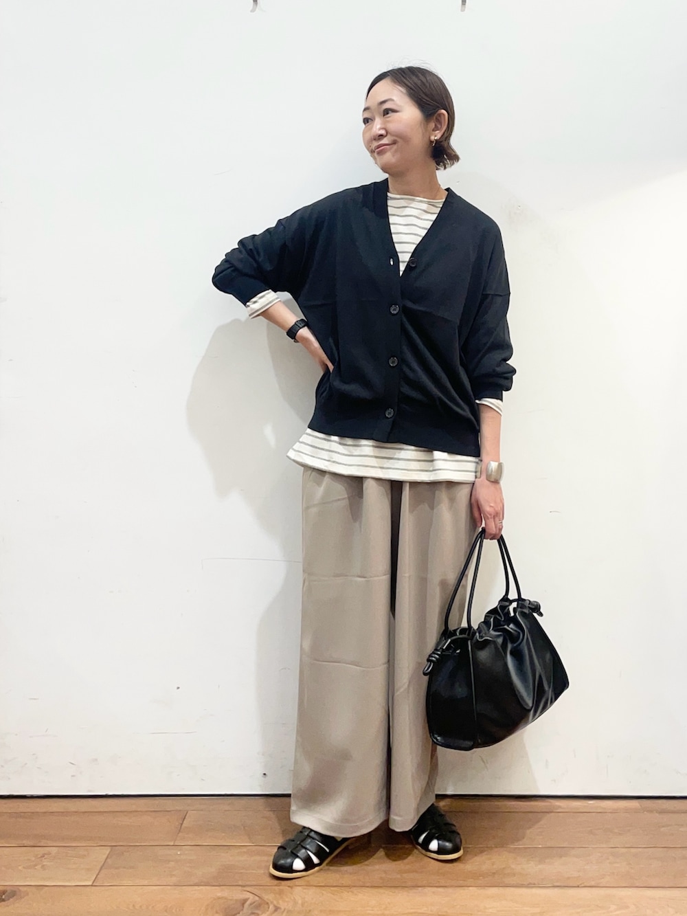 カーディガンはサラッとした生地感で、