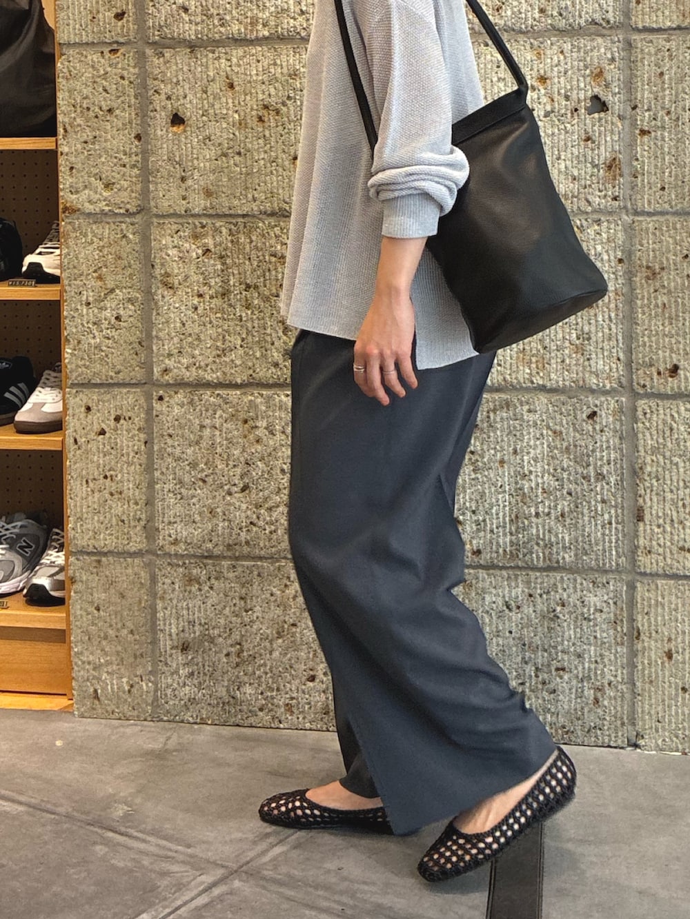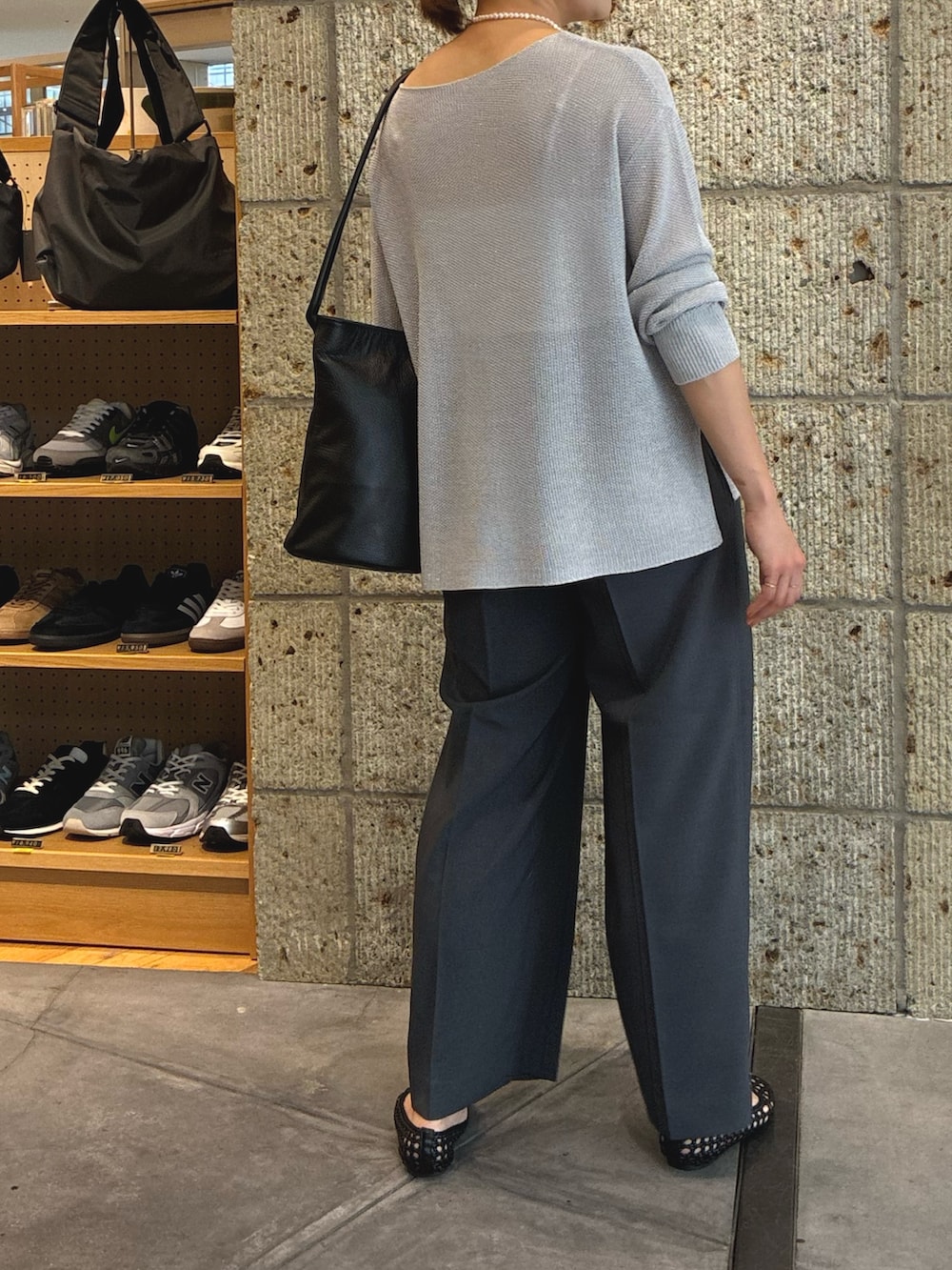 新作のラメシアーリラックスニットを使用し、きれいめカジュアルなスタイリングにまとめました🌟