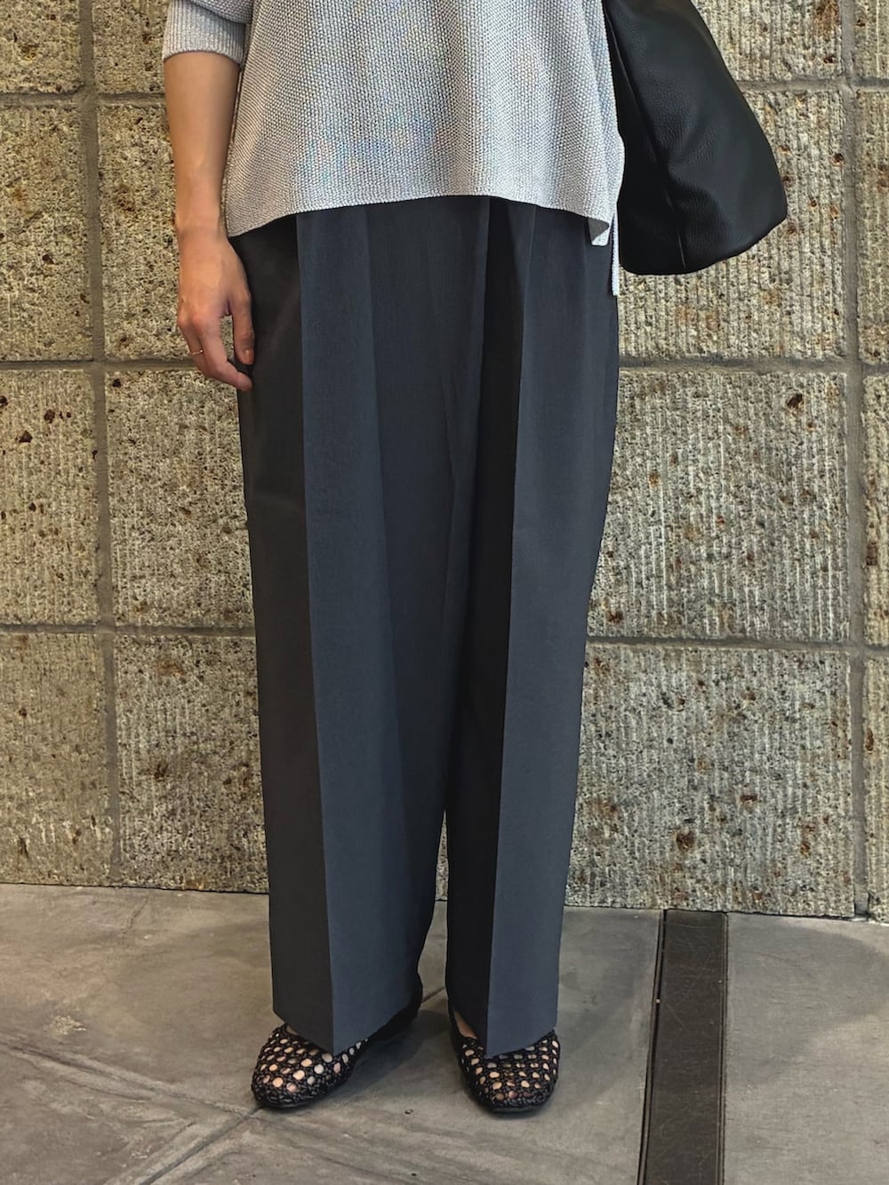 パンツはラップ風のデザインで、シンプルなコーディネートでもシルエットに動きが出るので周りと差をつけることができます🙆‍♀️