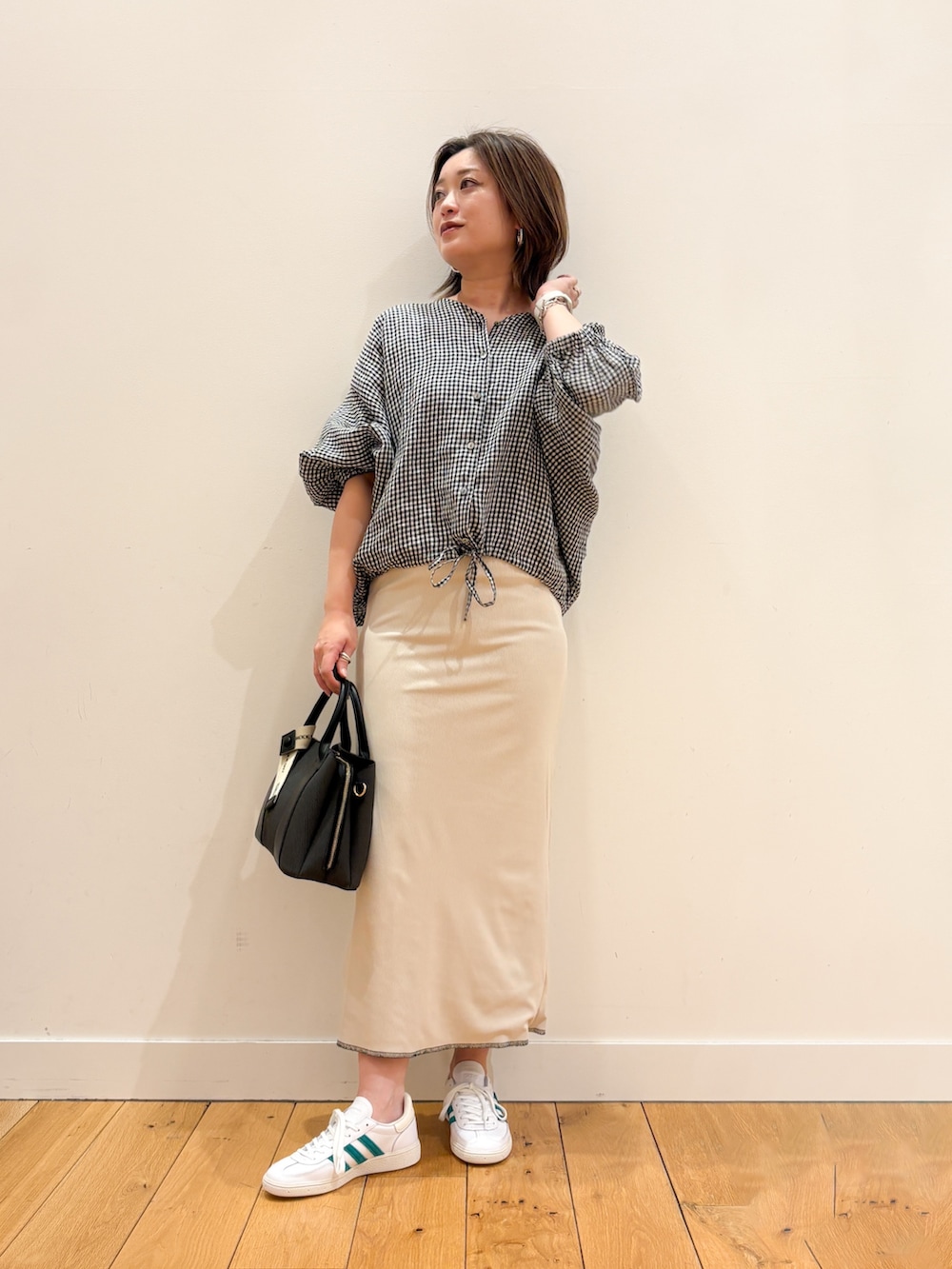 新作のスカートは