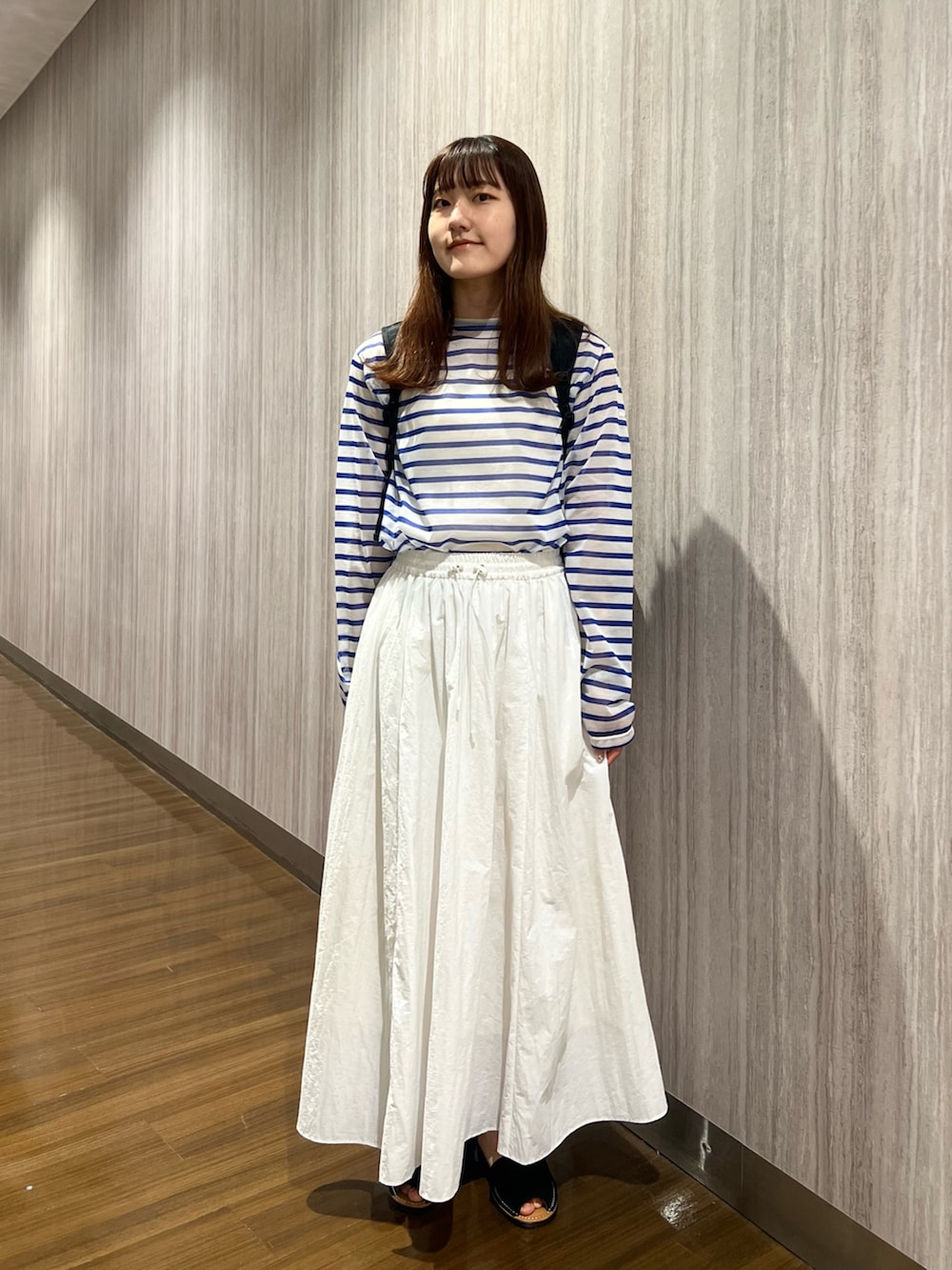 ORCIVALのシアーカットソーにナイロンスカートを合わせて、女性らしさもあるアクティブなコーディネートに⚓️🫧