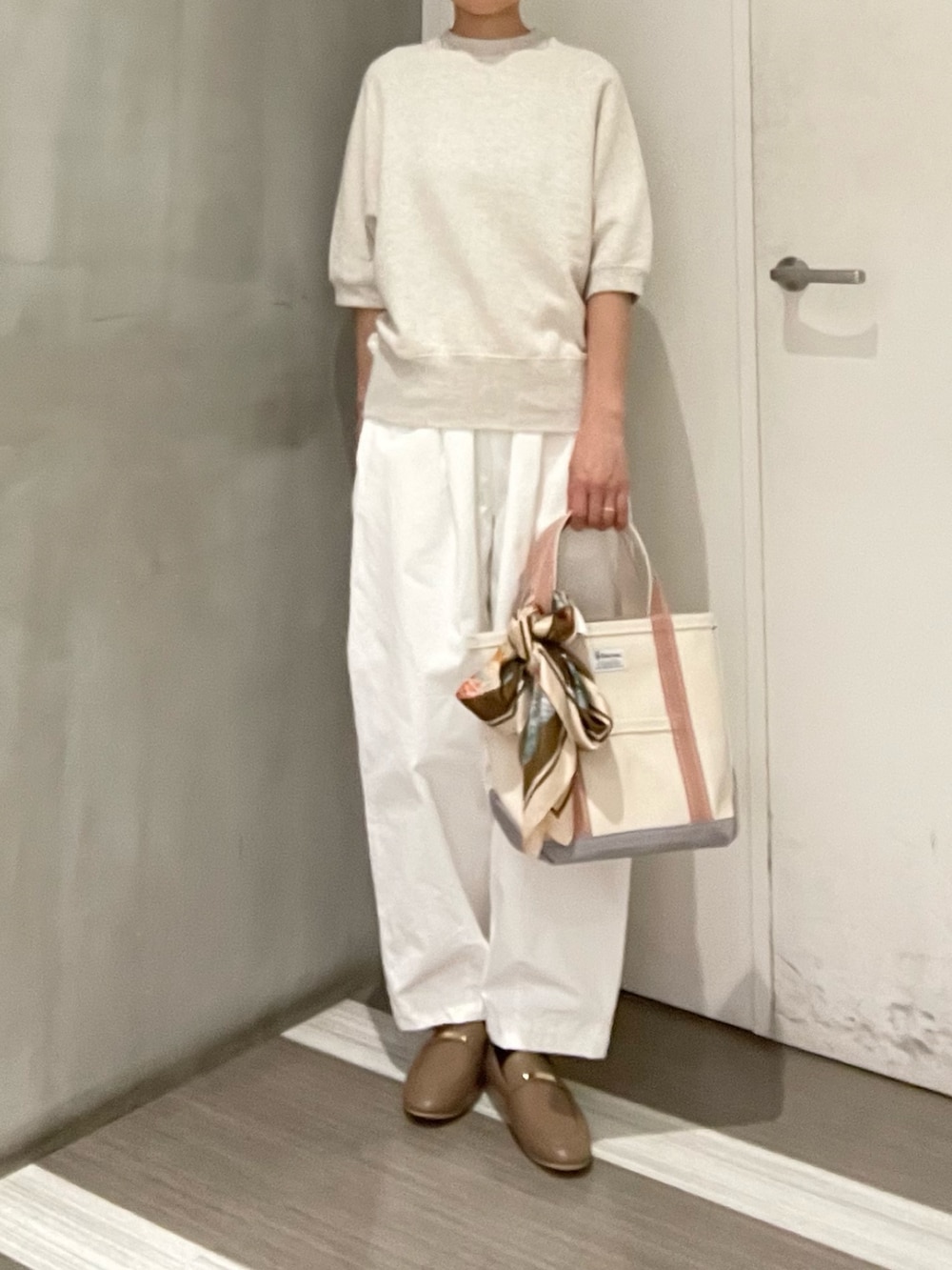 白ボトムを合わせて軽やかな印象に仕上げました。
