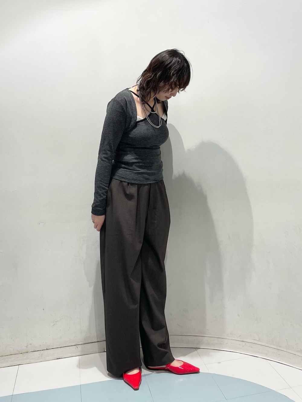タイトなトップスとルーズなサイズのスラックスで大人っぽいコーディネートを組んでみました!