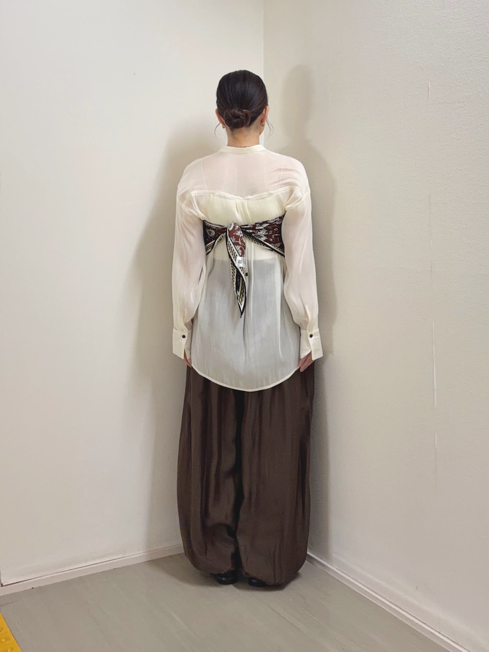 シャツはシアー素材で落ち感もあり
