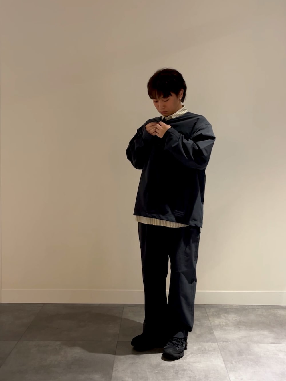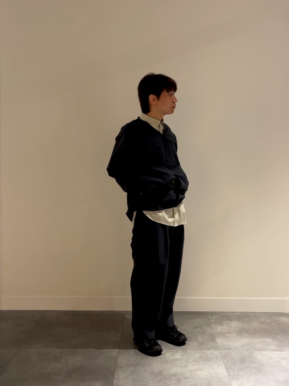 中にシャツを合わせて襟を見せることで程よくきちんと感も出してます(^^)