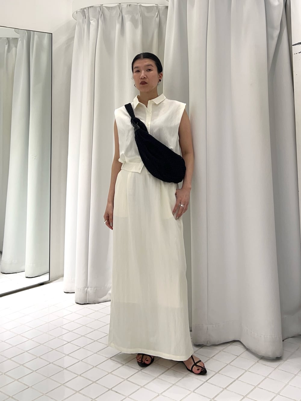 ブラウスとスカートがセットになっていて、一緒に着るとワンピース風に使えます◎