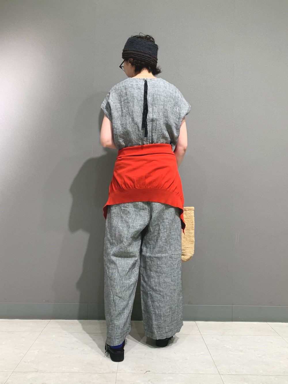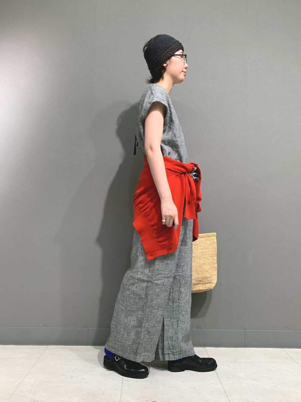 腰に巻いたポロカーディガンは色味がアクセントになるので腰や肩に巻くだけでも◎薄手なコットン生地でこれからの時期もお使いいただけます。