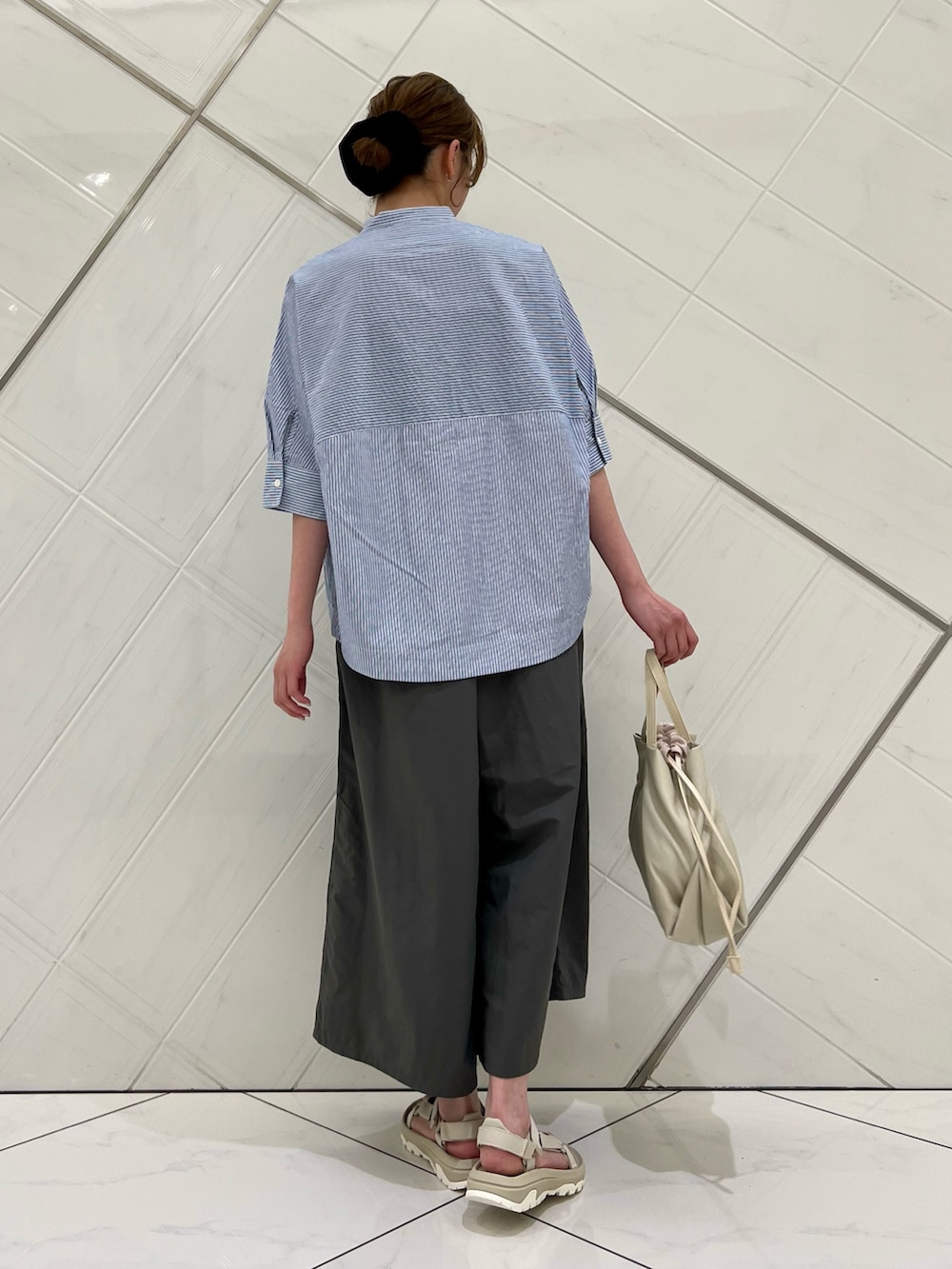 とても軽い着心地のパンツは長過ぎない着丈で