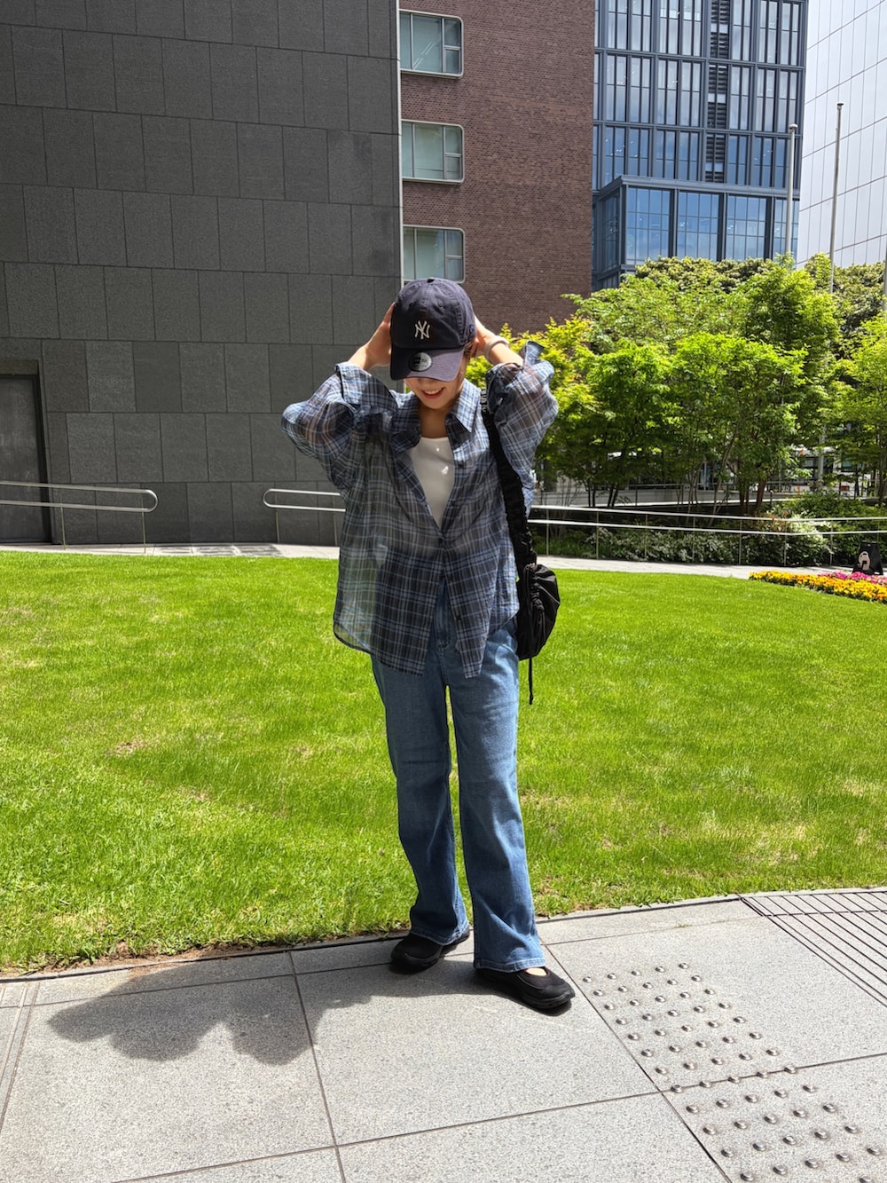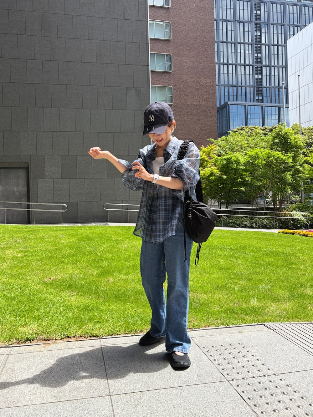 チェック柄がある事で透け過ぎず、インナー次第で夏〜秋まで着回せます♪