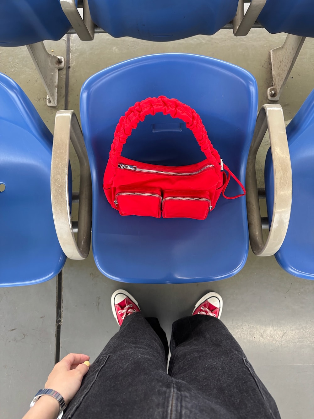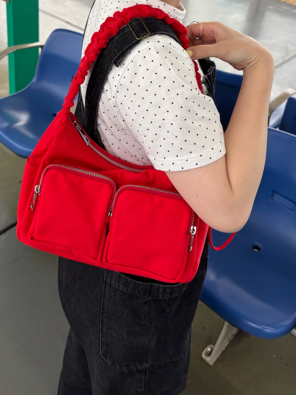 赤をポイントにスタイリングしました!