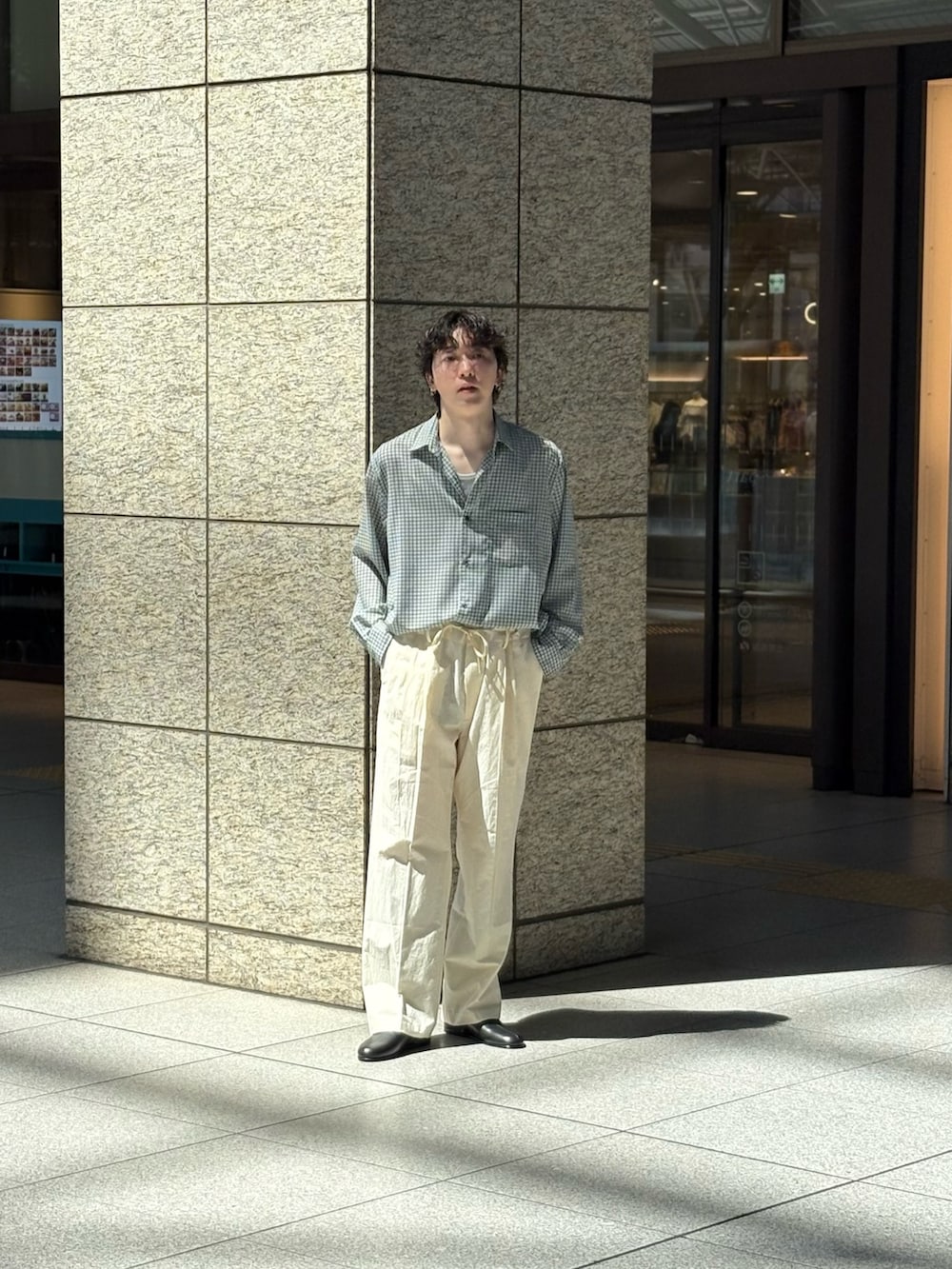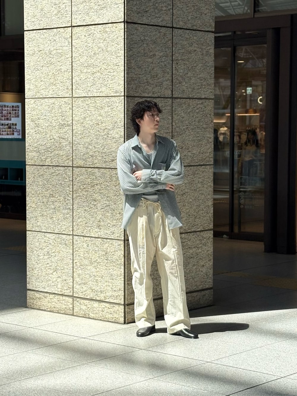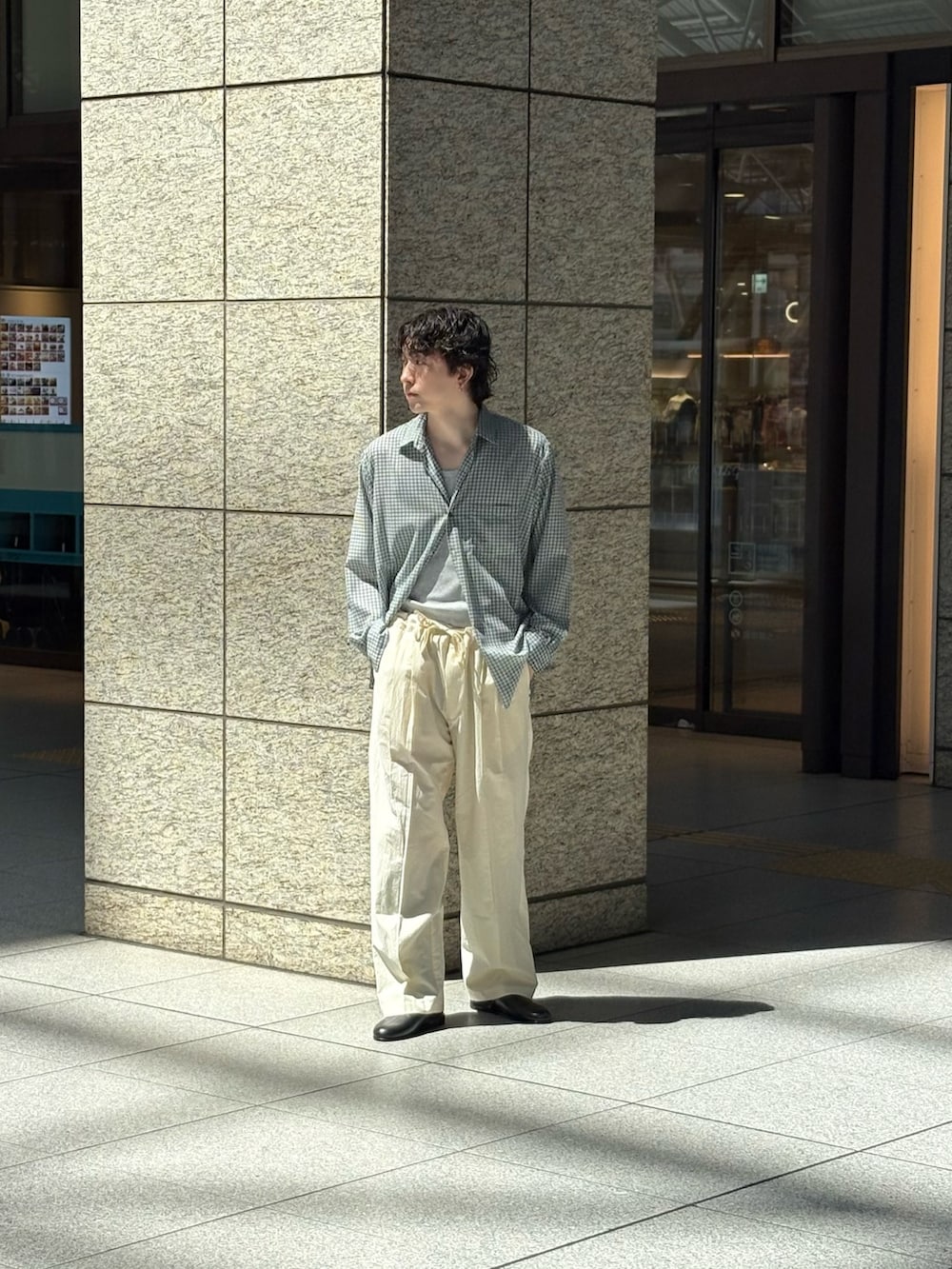 イチ押しのアルテリアのシャツとフジのイージーパンツを使用したスタイリングになります!