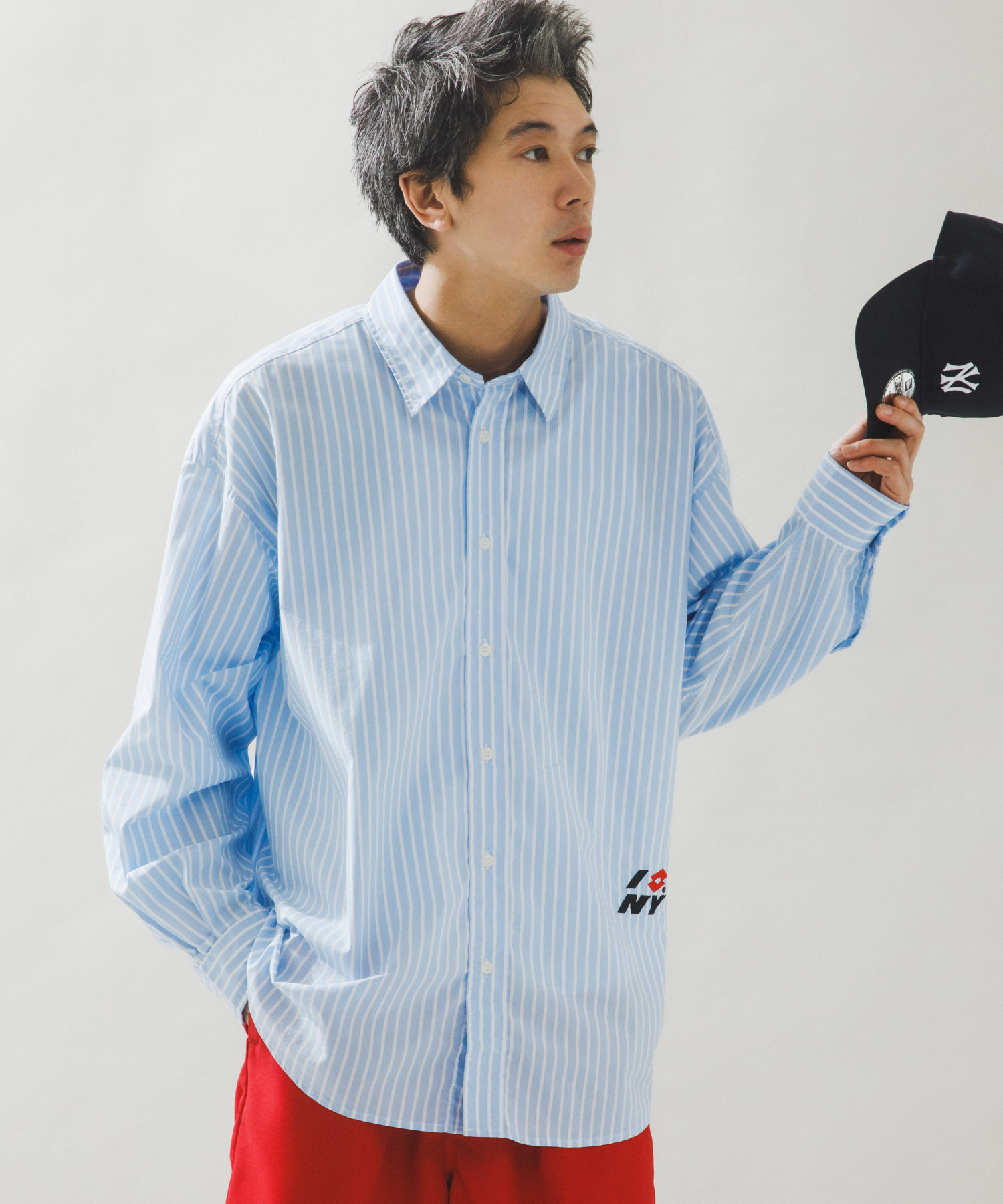 シャツに大きめのハーフパンツを合わせ今しか楽しめない春コーデ。